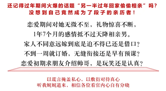 女生回老家,只用 6 天:相亲 → 见面 → 确定关系 → 见家长 → 敬酒 → 拍全家福 → 订婚。