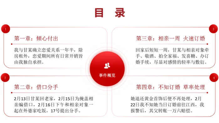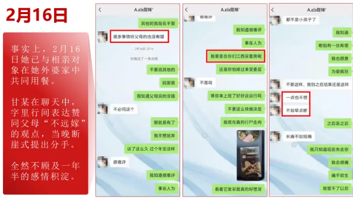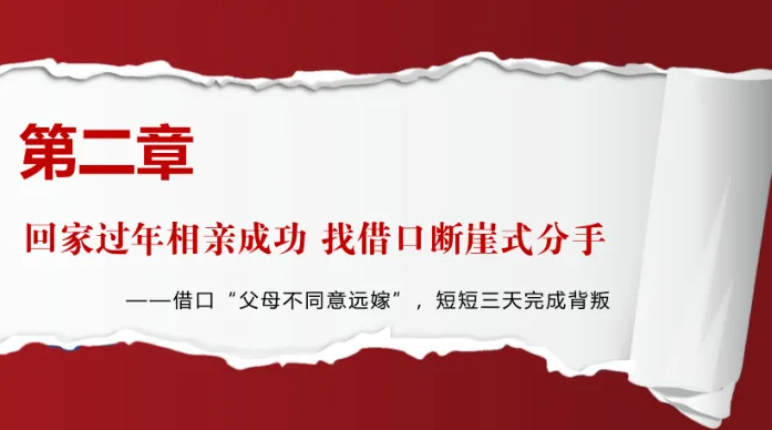下午,女生跟男生提分手,态度坚决,不留余地。同一天下午,她在外婆家,和新男友吃饭、敬酒、确定婚事。