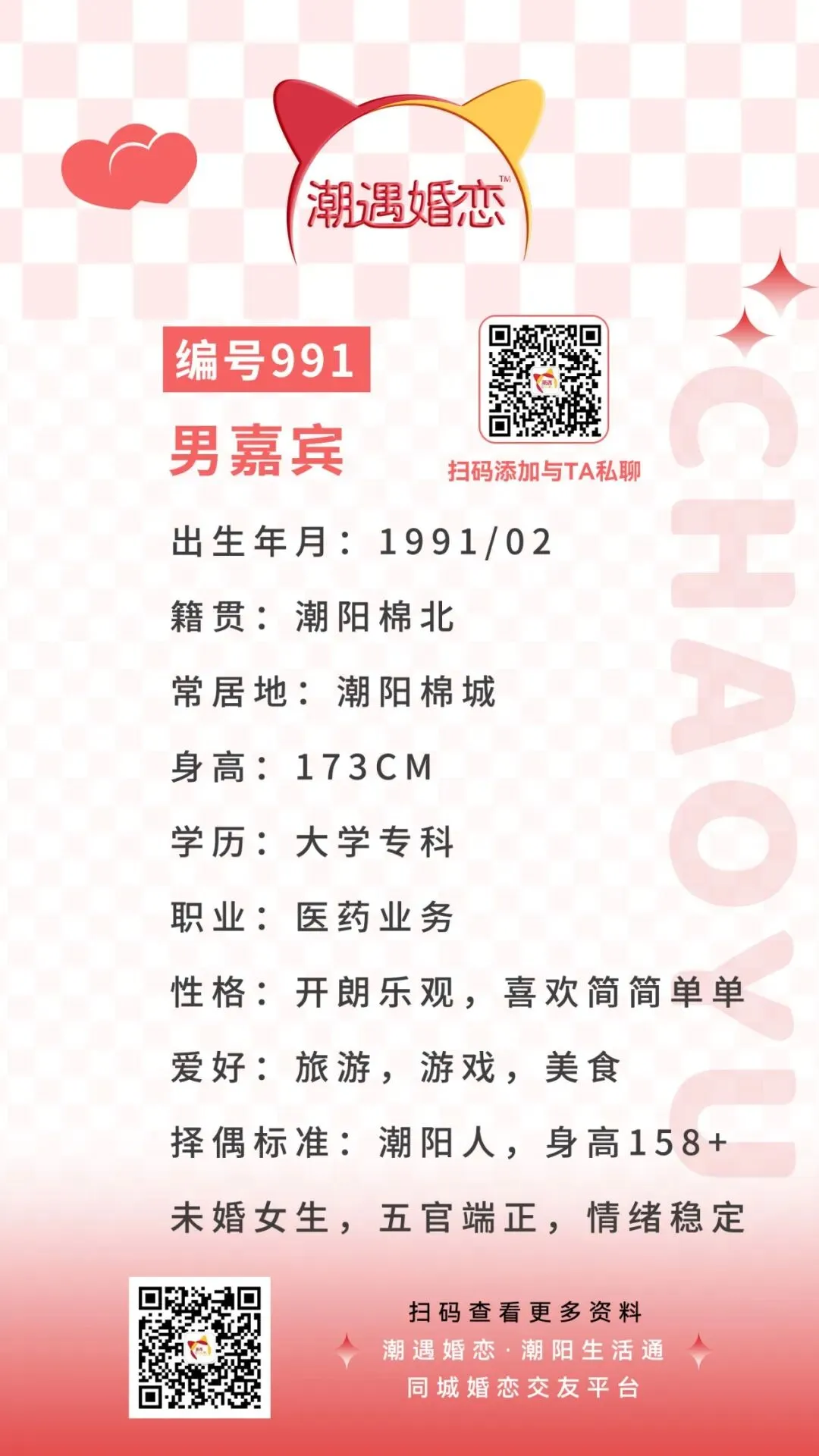 潮遇婚恋|(编号991)棉城男子,91年,择偶标准…