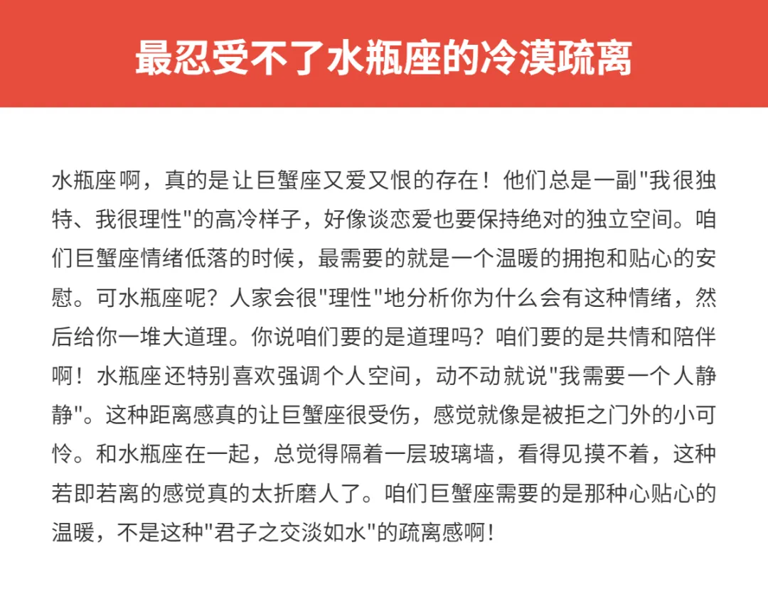 今天就来和你聊聊,巨蟹座恋爱时最嫌弃的那些星座,看看你有没有中招!