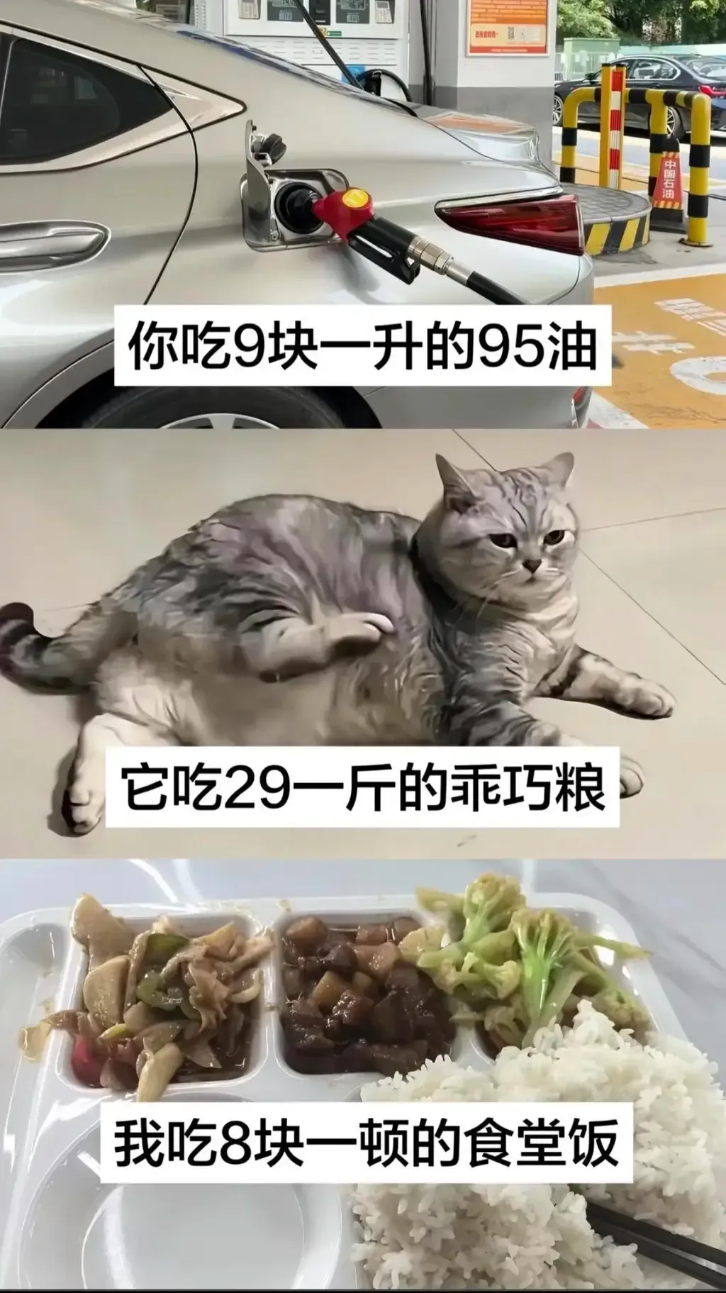 按照马斯洛需求来看,猫和车的需求等级可比吃饭高太多了,没毛病!