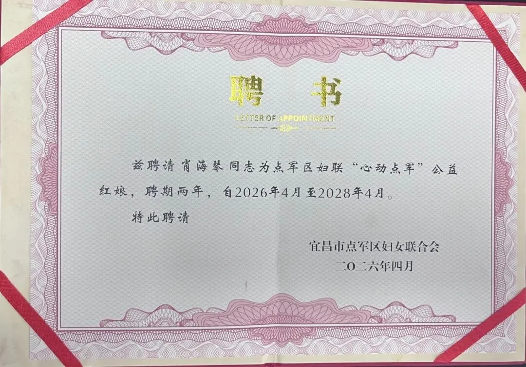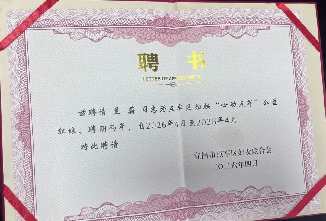 队员获颁点军区妇联“心动点军”公益红娘聘书
