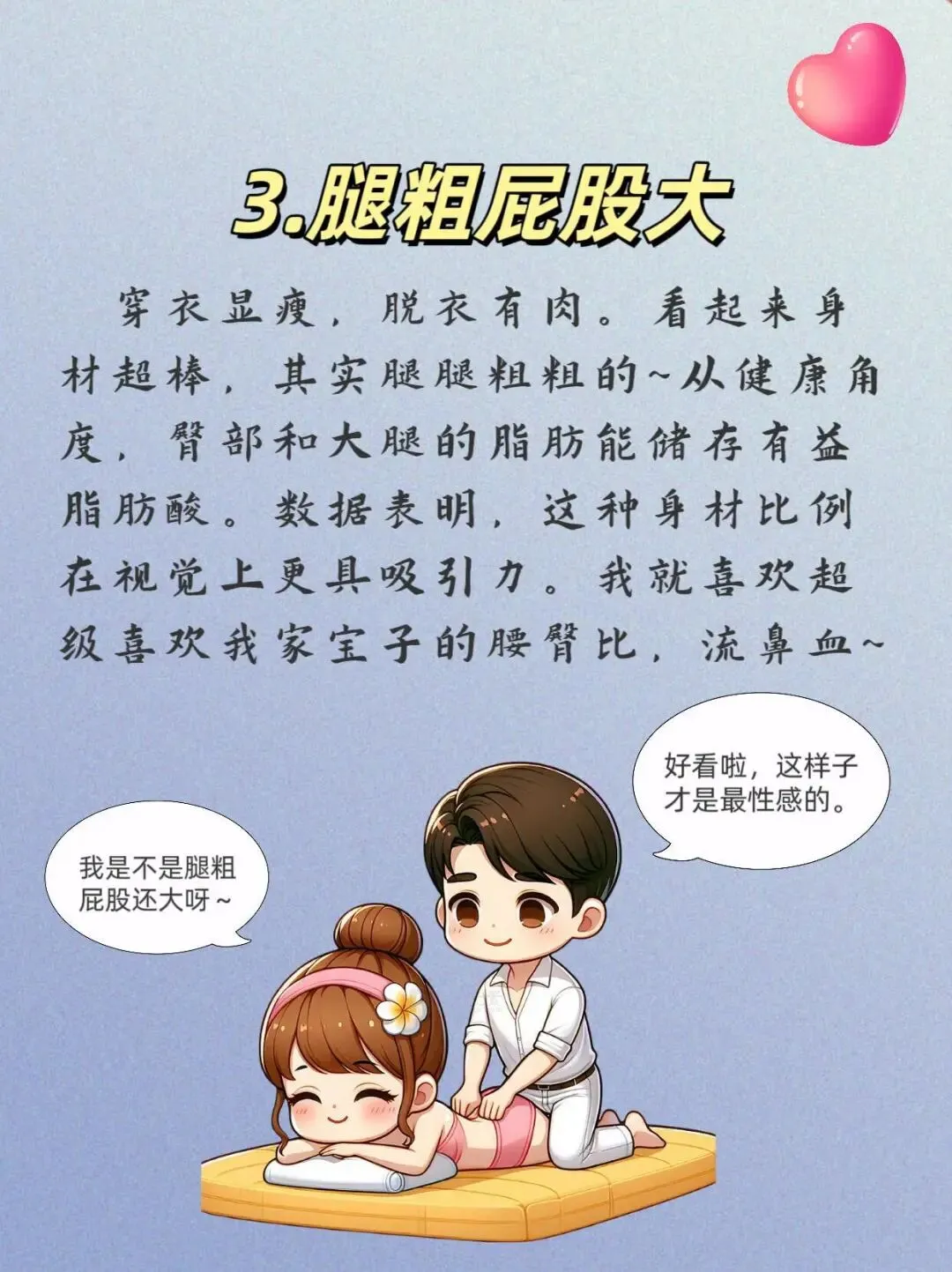 第四张把重点放在“腿粗屁股大”这种很容易引发讨论的话题上,文字先抛出一个很多人会在意的点,再转成安慰和偏爱,【图片】