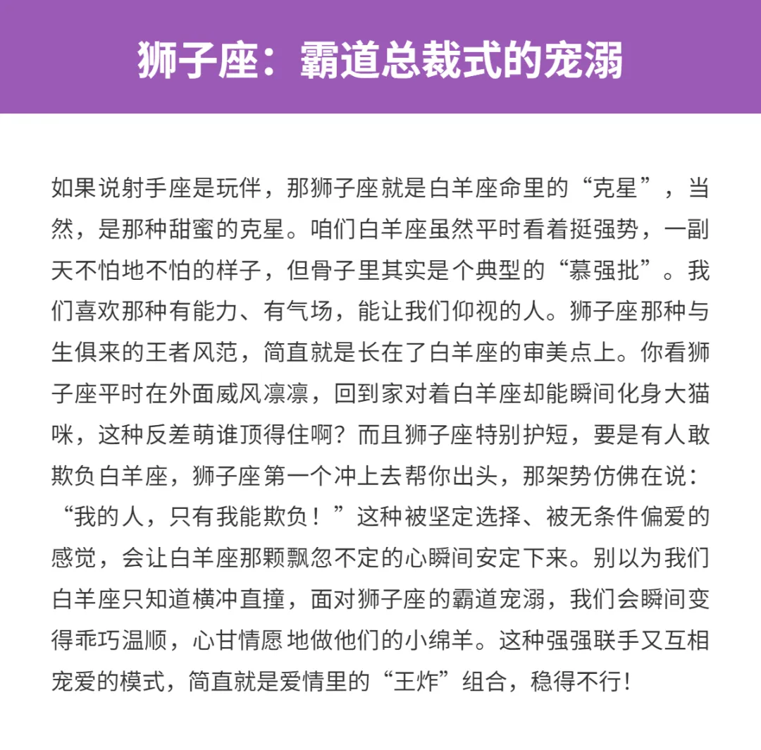 那么问题来了,到底谁才是那个能降得住白羊,让我们爱得死心塌地、基本不会分手的人呢?