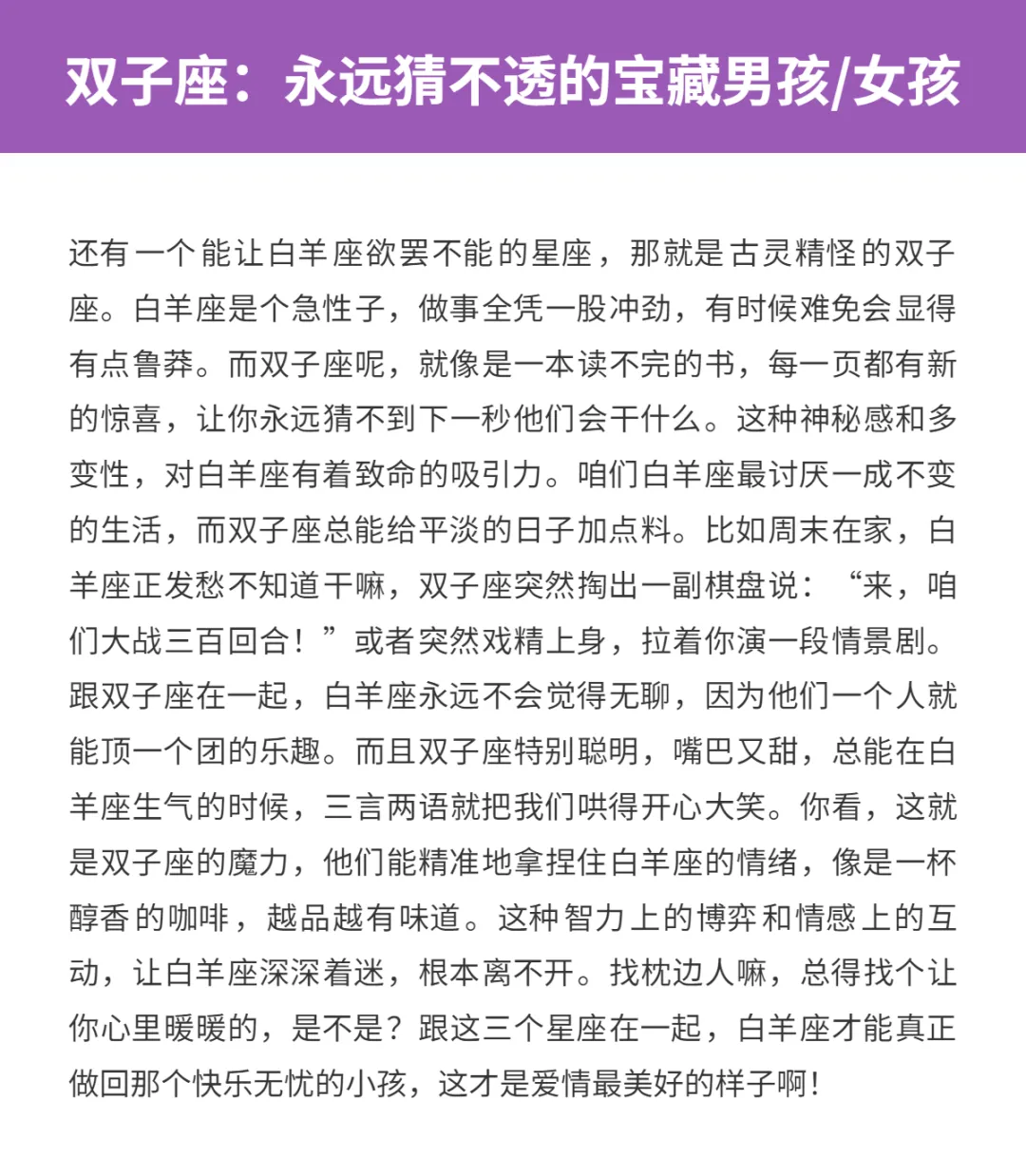 很多人都说白羊座像一阵风,来得快去得也快,感情也是三分钟热度,