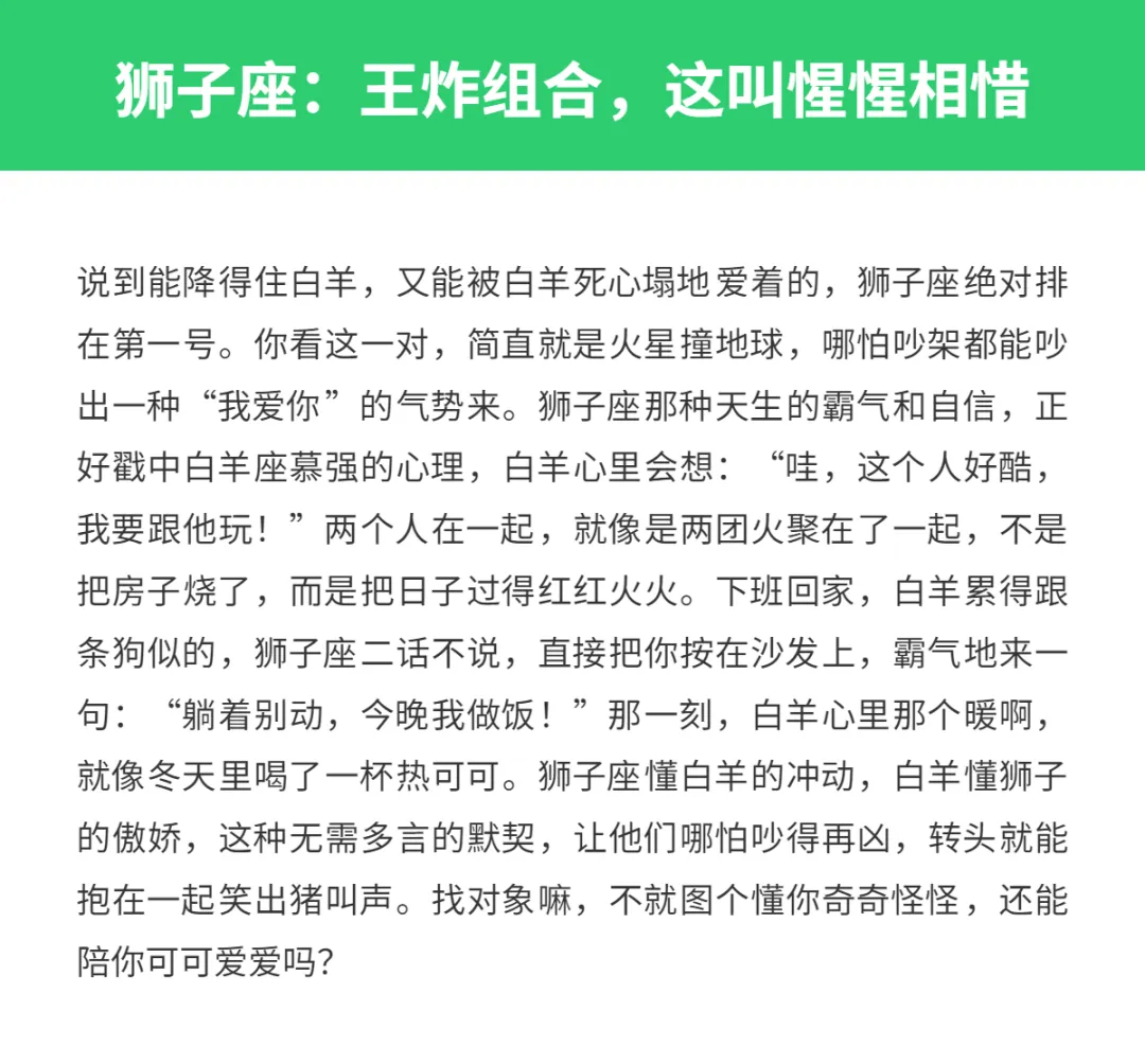谁和白羊恋爱基本不会分手?