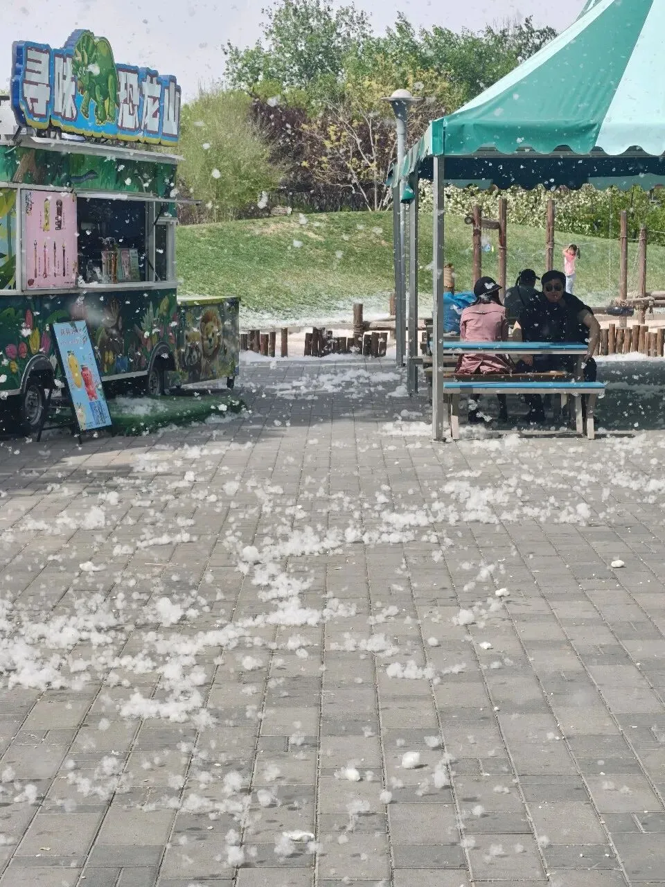 人是真的多。大概全城的人都在同一个周末冒了出来,推婴儿车的、带露营装备的、举棉花糖的,乌泱泱地涌向入口。而比人更密集的,是柳絮——漫天飞舞,白茫茫一片,像一场不合时宜的四月雪。话说现在北京还能新种杨柳树吗?这个物种真的太夸张了。印象中园林部门大概已经停止新种杨柳雌株,可眼前这铺天盖地的架势,像是往年积攒的絮意一次性还给了春天。略微影响体验,但也算是北京春天特有的仪式感吧。