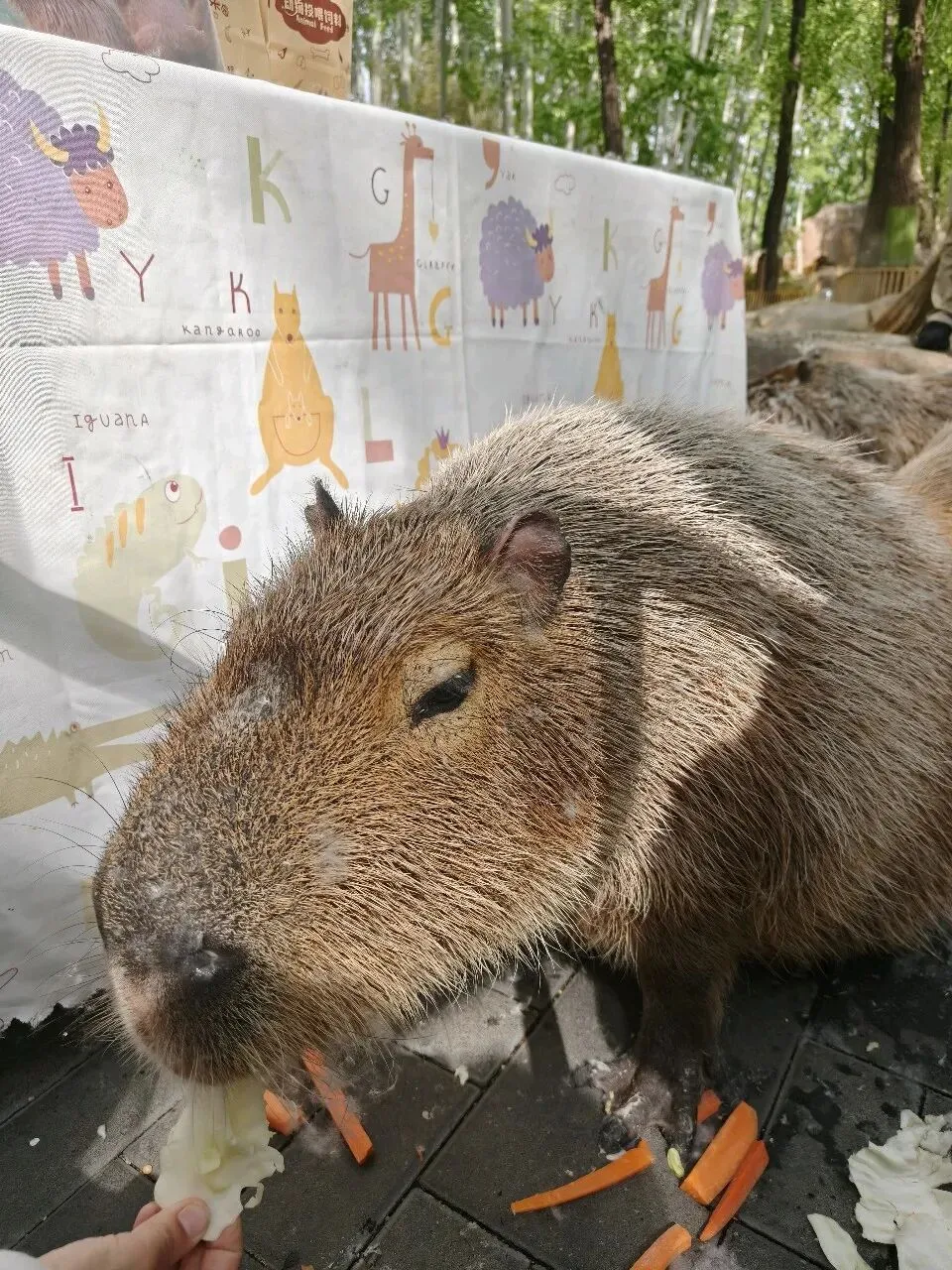 本次游玩的另一大目的,当然就是卡皮巴拉啦。网上看了无数遍它们的表情包,真见到活的,还是被那种佛系的气质击中。任凭游客怎么摸、怎么拍照,都岿然不动,像入定了的老僧。我伸手摸了摸,身上的毛比想象中硬,扎扎的,不像看起来那么软糯。不错,小家伙们活得很有原则:外表随和,骨子里有刺,但从不主动扎人。
