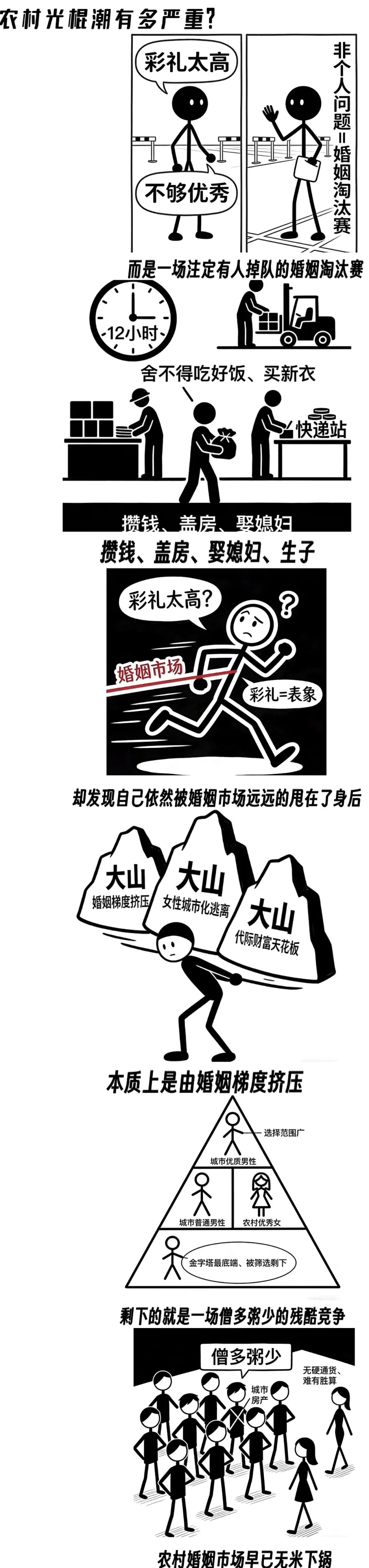 不管男女,四十岁还没结婚的,要么是条件太好,太过挑剔,要么就是条件太差,身高、家庭、经济等各方面原因。但是他们那个年龄段的男女比例严重失调,尤其是农村,僧多粥少,就导致哪怕女性是二婚,甚至还带着孩子,有些家庭为了给儿子凑成一户人家也没有资本再挑三拣四。