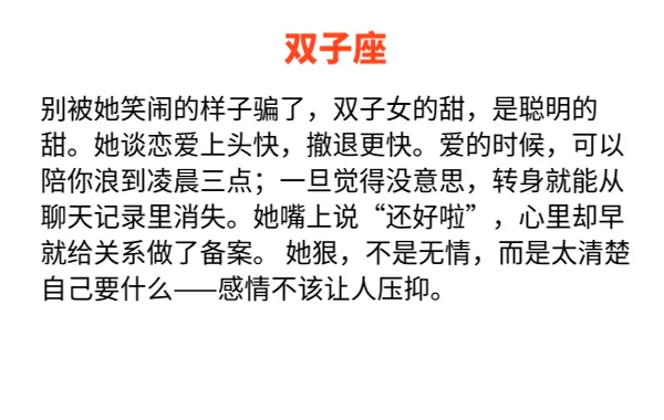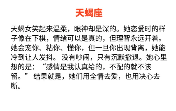 生活里.总有那么几.种女生.,笑起来甜.得像夏.天的汽.水,谁都想.靠近。但别被.外表骗了.,她们的爱.情世界,从.来不是小.打小闹.的温柔戏.。那份甜.只是她们的.盔甲,狠才是.她们的.底色。 今.天就聊聊.,哪三个.星座女生.,用最甜的.脸,谈最狠的.恋爱。