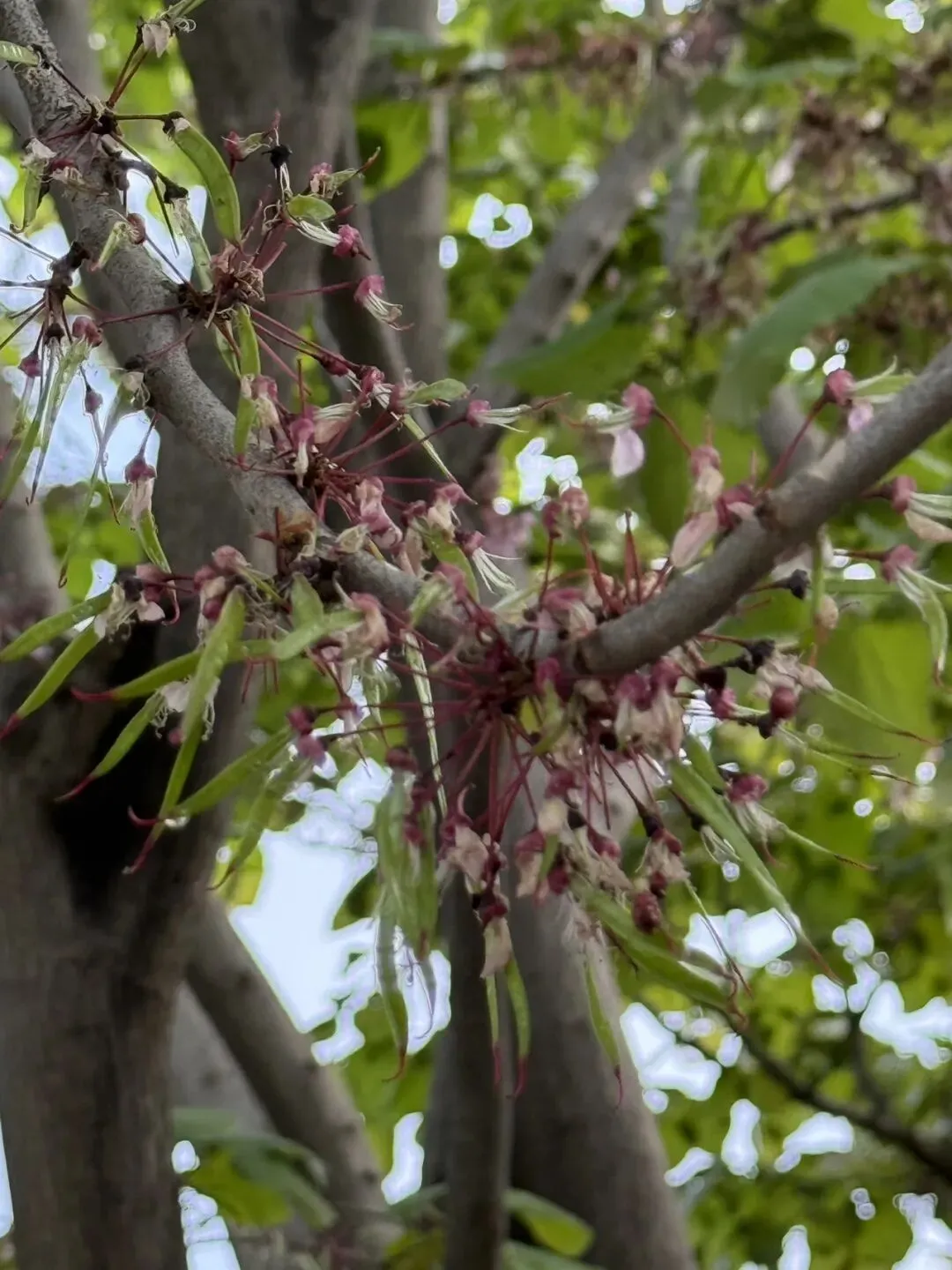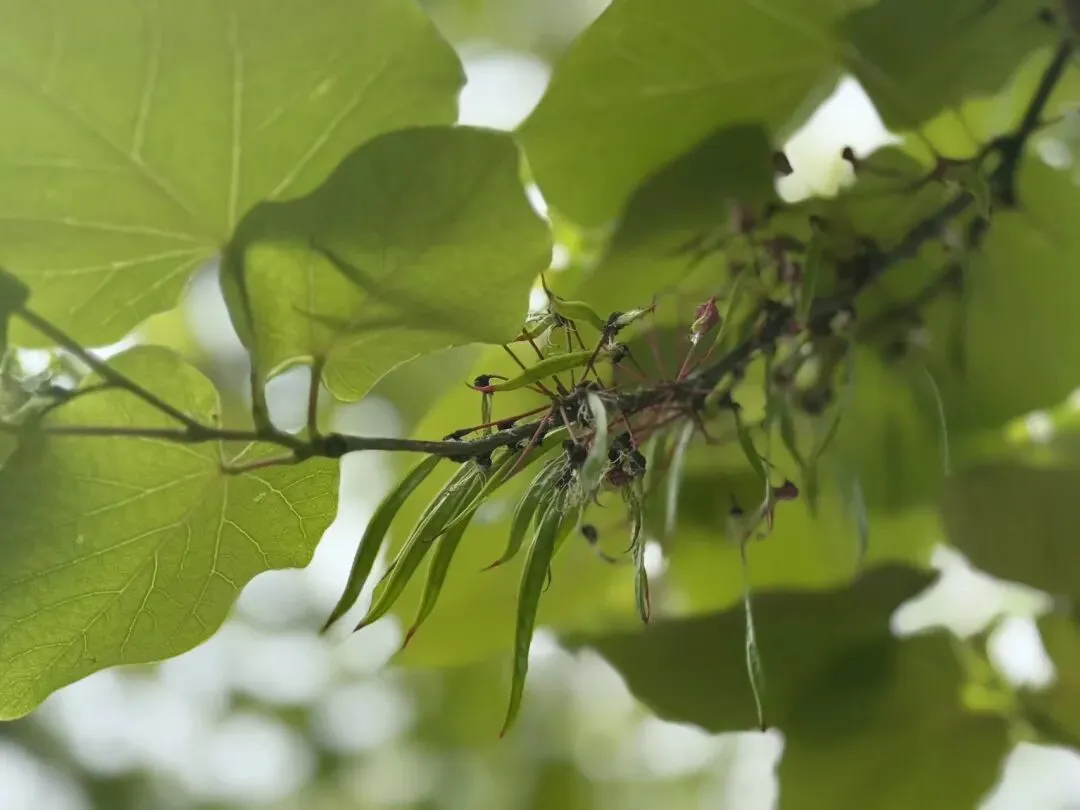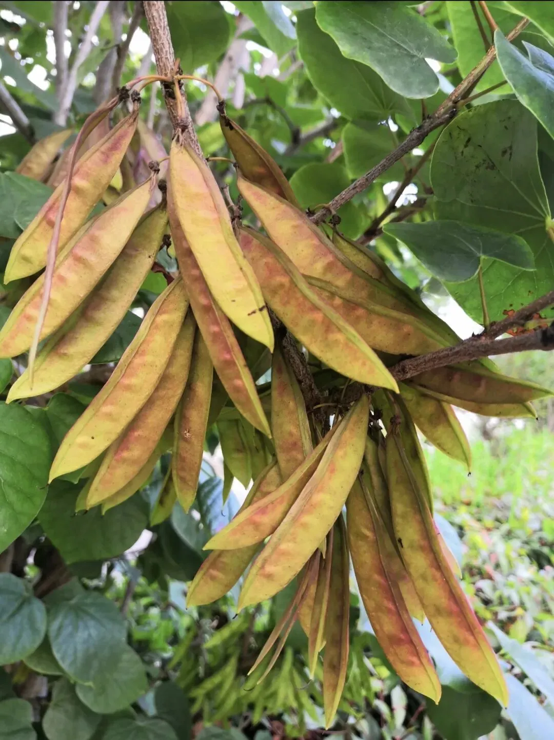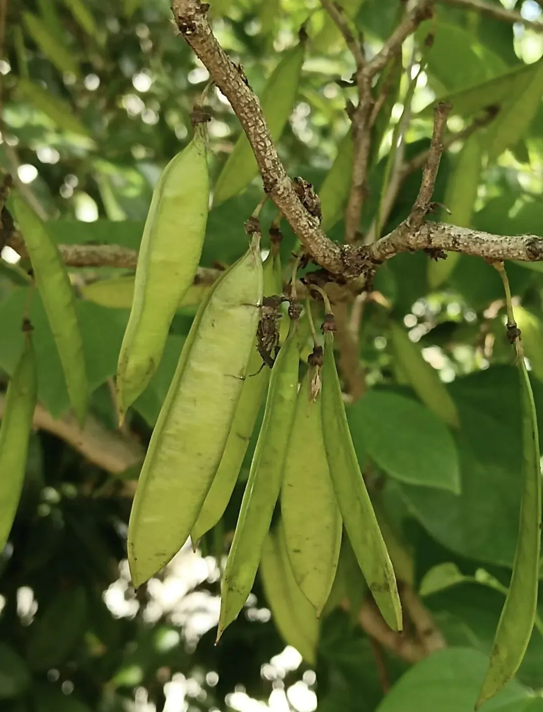 人呐!就是经不起甜言蜜语,经不起吹捧。于是屁颠屁颠的和面,醒发,塑型,下锅蒸,当揭开锅盖那一刻,如腾云驾雾,吹一口香气,哇哦,每一个馒头都在朝我咧嘴笑😁着说:好好生活,要蒸蒸日上哟。这时候,烤箱也有意见了:“不加点核桃碎葡萄干什么的整出点面包来,就不是你的风格!”这家伙善用激将法,对人性拿捏十之八九,说干就干,只管行动,不管结果。蒸锅这时候又不服气了,哼,难道你就不想尝尝蒸紫荆花味道如何吗? 它们蒸的那些老俗套都吃腻了,我可不想告诉你有多好看好吃,后悔去吧您嘞!一周的美食九九八十一变之后,胃终于消停了,花也疲惫了,纷纷落幕,逐个散场,叶子满面春光,陆续从枝桠上拱了出来,嫩嫩的黄绿到浅绿到深绿,小小的豆荚褪去了粉紫色的干花,也嬉笑着、拥挤着跑出了家门,像极了奔跑着撒欢的孩子们。日头渐长,阳光明媚,脱下外套换单衣,脱下单衣换短袖,夏天快要来了,阳气十足,植物疯狂生长,谁都不甘落后。一串一串的豆荚,扁扁狭长的,手感滑滑的,颜色却不尽一致。