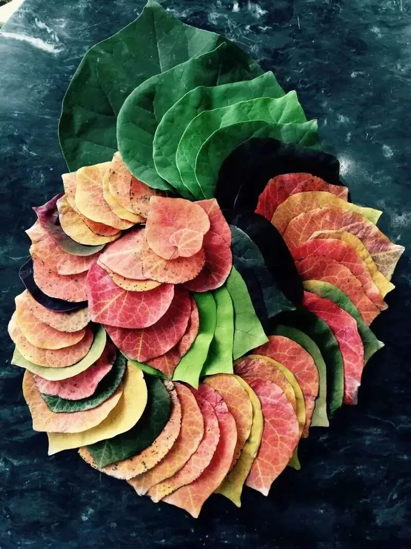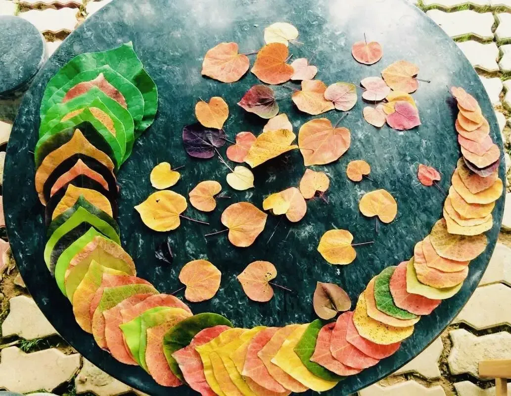 转眼,又到了最舒服的初秋,凉风习习,世界开始五彩斑斓,像打翻了的颜料盘,紫荆叶也迎来了它一生最高光的时刻。