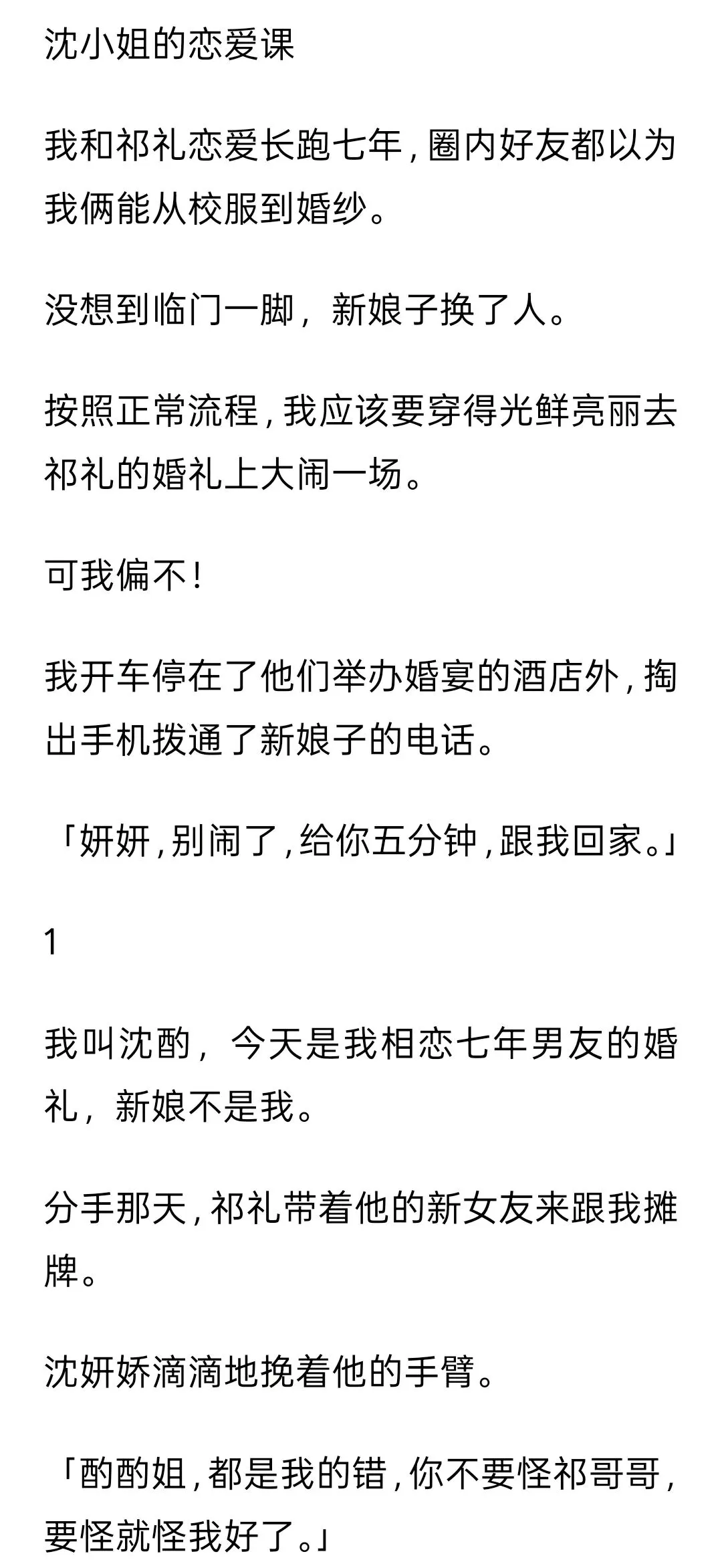我和祁礼恋爱长跑七年,圈内好友都以为我俩能从校服到婚纱.没想到临门一脚,新娘子换了人.