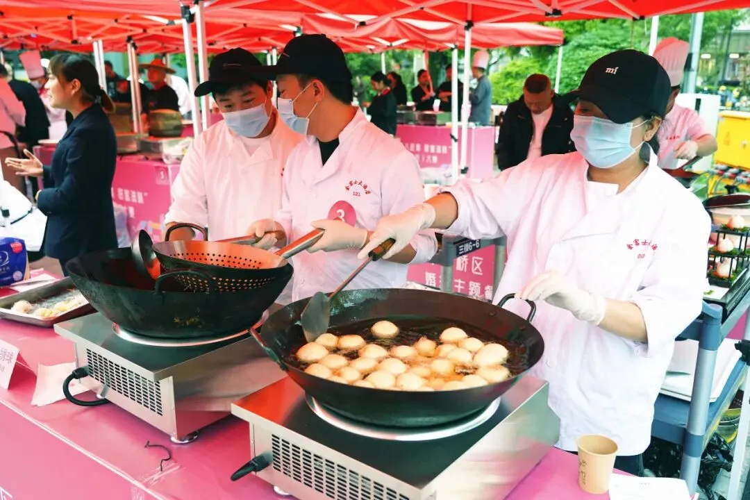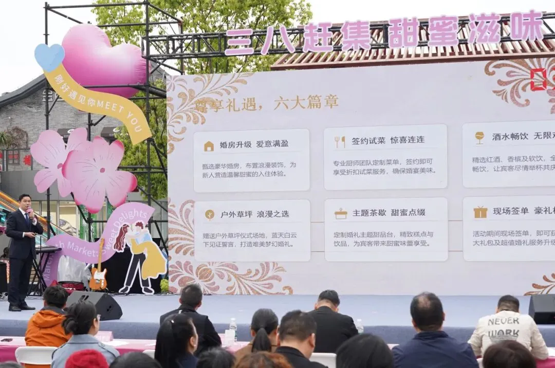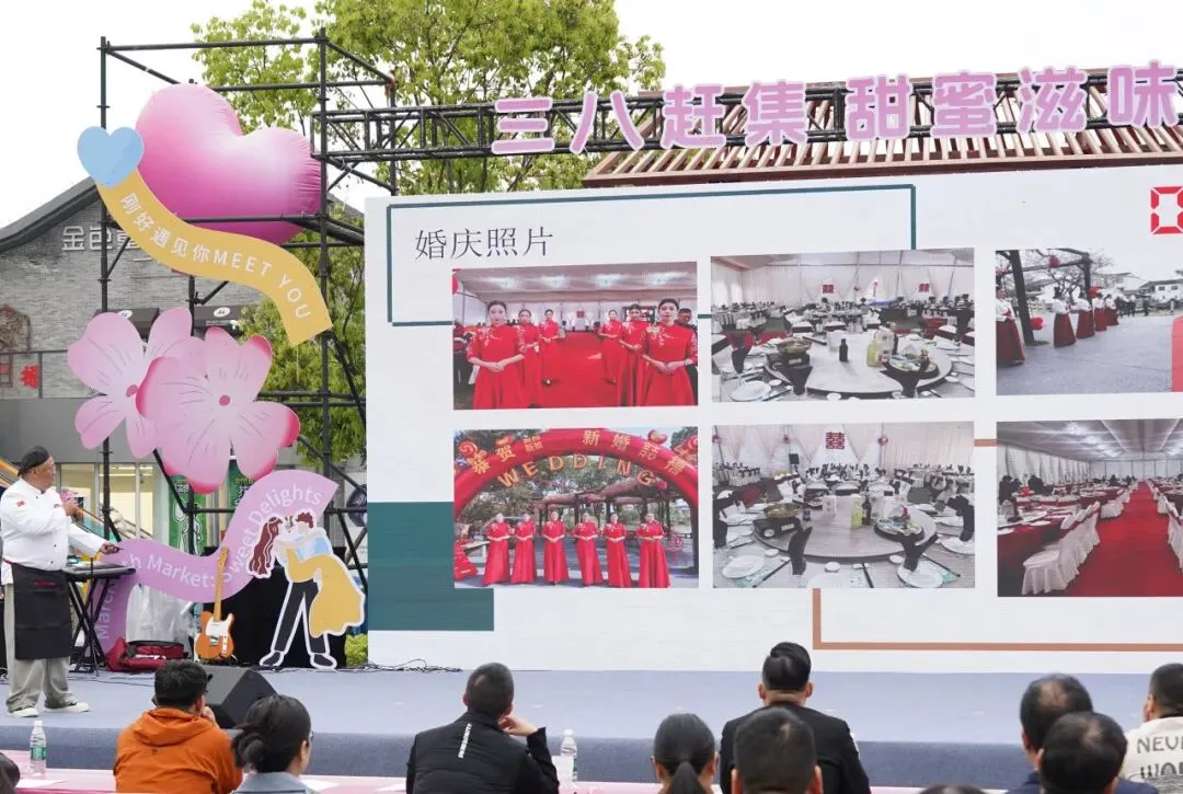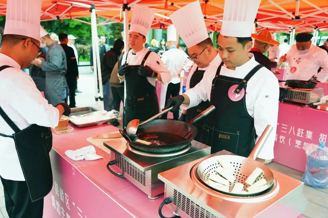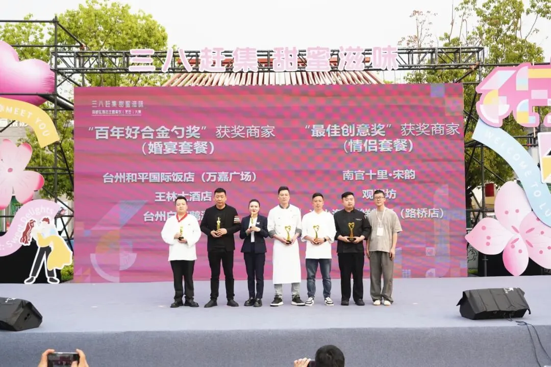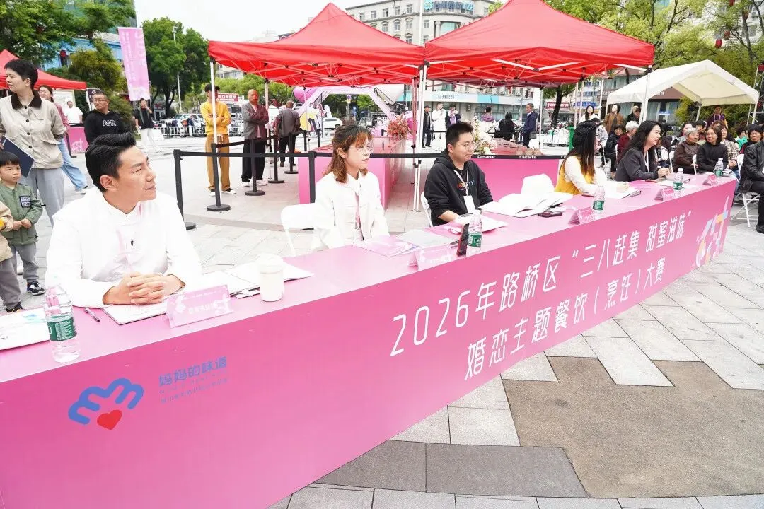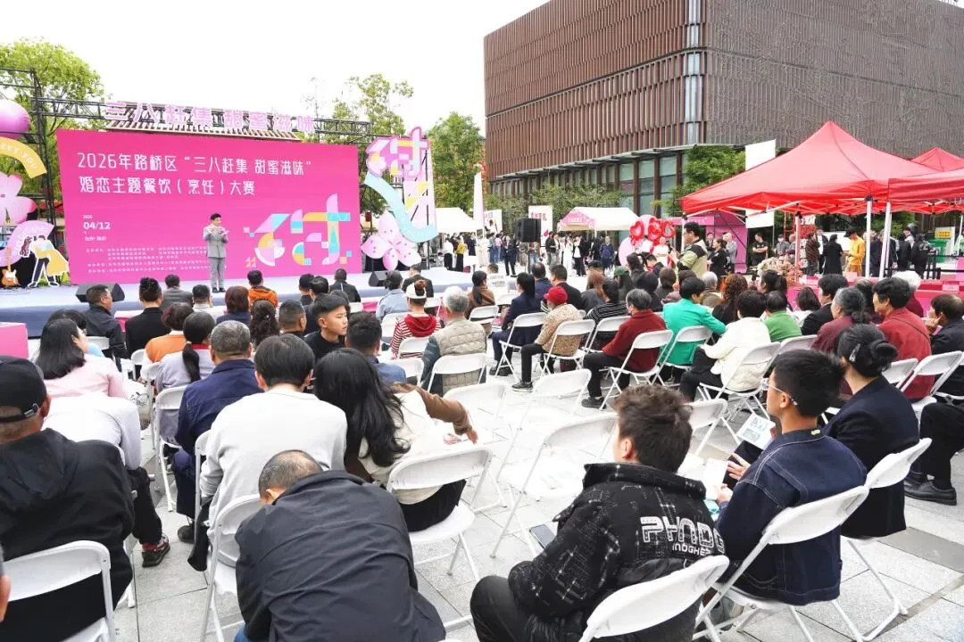为进一步激活婚恋消费热情,助力路桥甜蜜经济发展,4月12日下午,2026年路桥区“三八赶集 甜蜜滋味”婚恋主题餐饮(烹饪)大赛在台州南官新天地圆满举办。活动以美食为纽带,创新采用“美食竞技+路演展销”融合形式,深度链接婚恋文化与餐饮技艺,为准新人与情侣提供多元、个性、定制化的餐饮服务方案,推动婚恋服务从线上匹配向线下实景体验升级,打造了一场色香味与氛围感兼具的甜蜜盛宴。