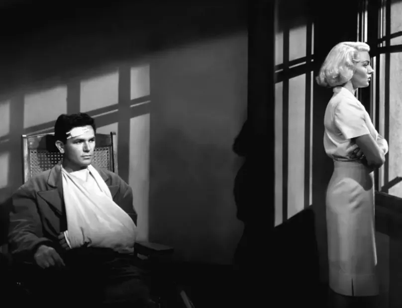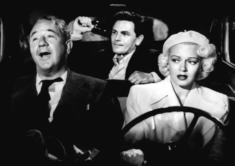 《双重赔偿》出自大师比利·怀尔德之手:保险推销员瓦尔特第一次见到菲利丝时,就被这位“蛇蝎美人”迷住了。她穿着金色泳装,脚踝上的脚链叮当作响,直截了当地问:“你想杀了我丈夫,拿到他的双倍赔偿金吗?”