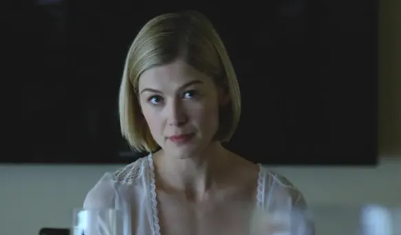 计划中途出现变故,她不得不杀死纠缠自己的男备胎,浑身是血地回到了丈夫身边。艾米残杀男备胎的戏份,极具视觉与心理冲击力。
