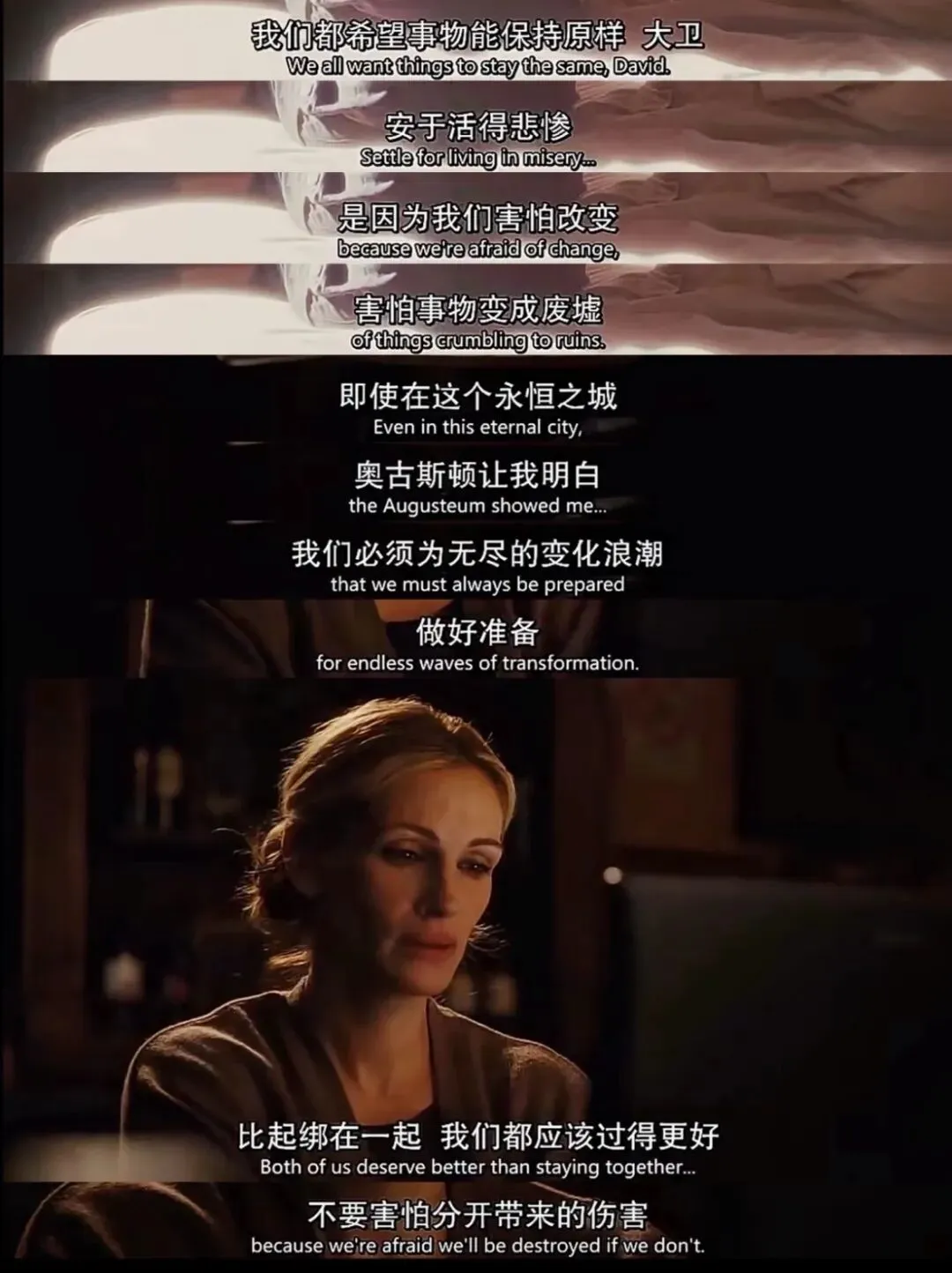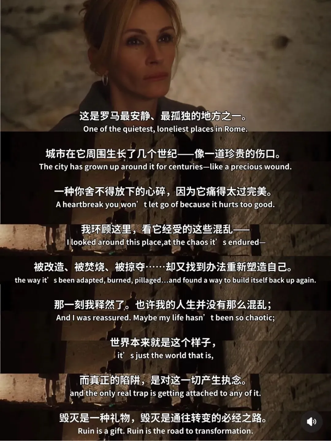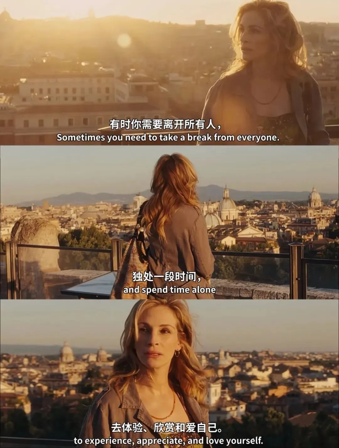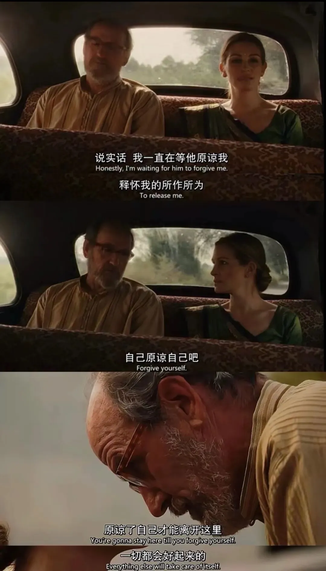 去年还是前年失恋很伤心,看了一部我很喜欢的电影《美食祈祷和恋爱》。今天又看了一下截图,也感觉到很抚慰我。这张截图很长时间都是我某个社交平台的头像。