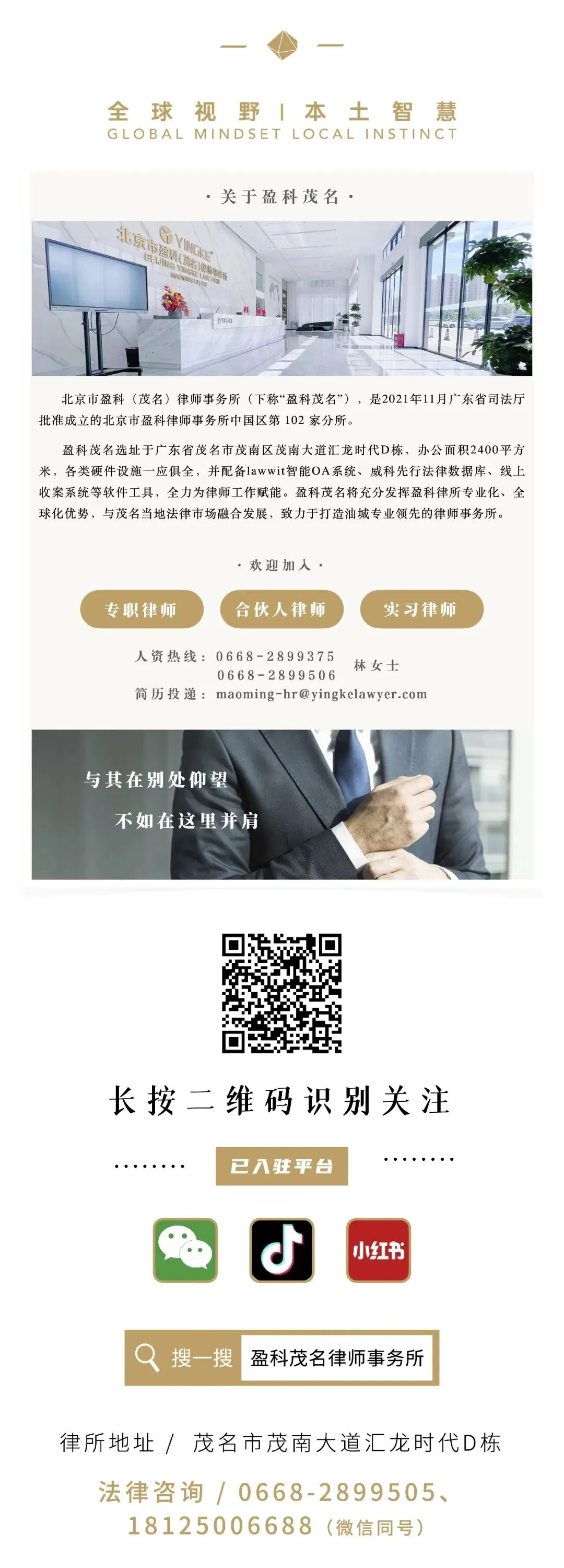 本篇文章仅代表作者本人观点,仅为交流目的,不代表北京市盈科(茂名)律师事务所或其律师出具的任何形式之法律意见或建议。北京市盈科(茂名)律师事务所明确不承担基于对文章任何形式的使用(包括作为或不作为)而产生的一切后果。