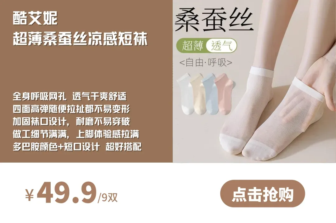关键今天的价格还很让人欣喜,49.9到手9双,懂货的姐妹应该知道像这种材质做工的袜子能拿到这个价格真的很划算了。9.9那些根本没法比!