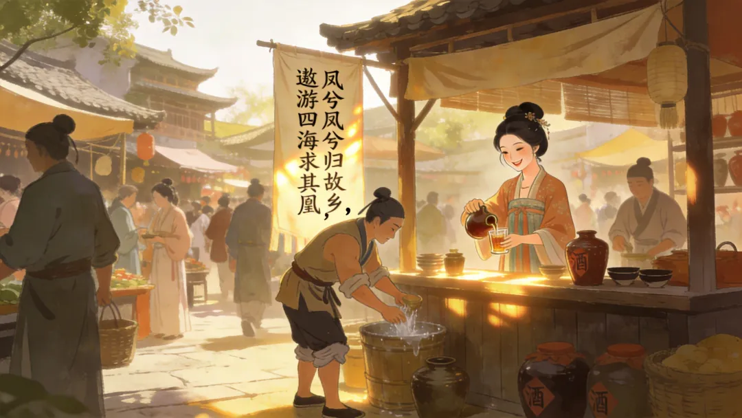 她拉着司马相如回到临邛——那个她私奔出走的地方。然后,在父亲卓王孙的眼皮底下,当街开了一家酒肆。