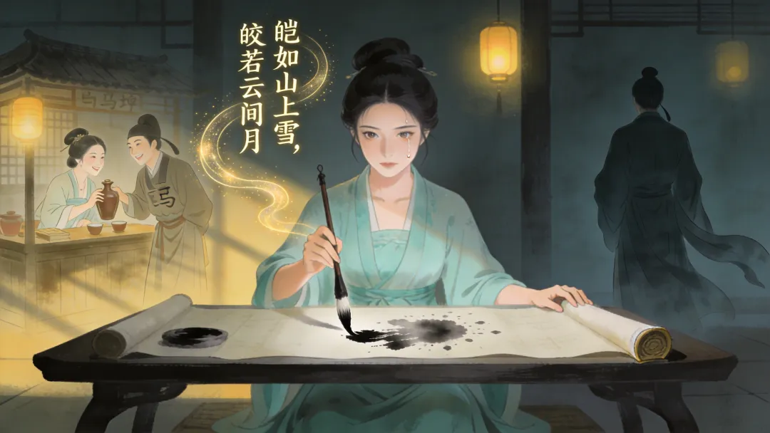 她铺开绢帛,研墨提笔,写下了那首流传千古的《白头吟》:
