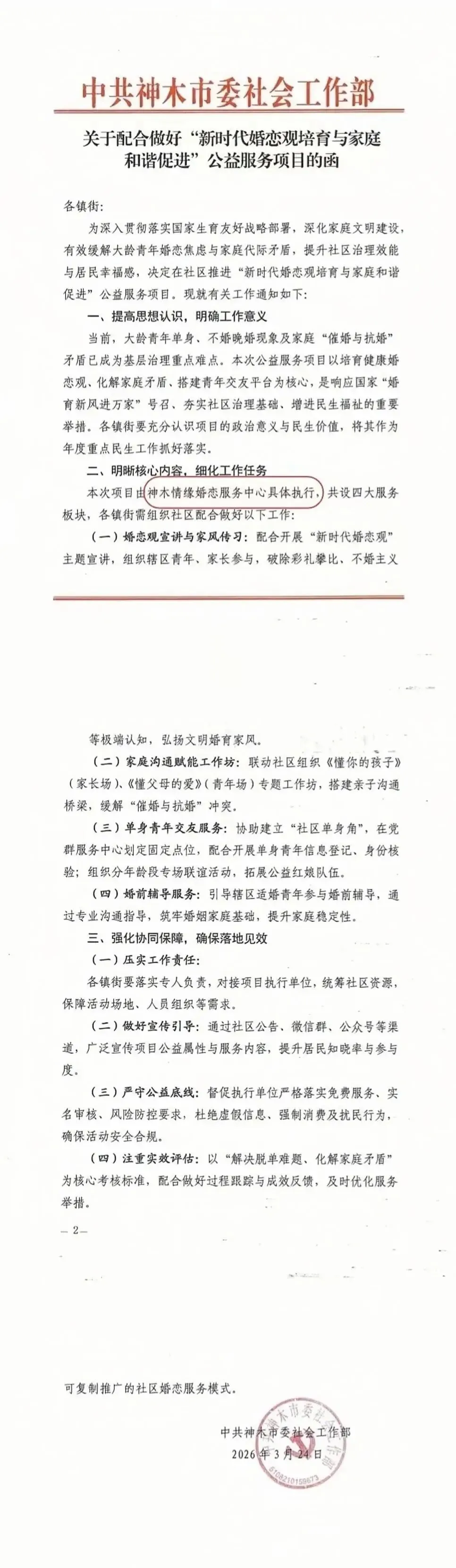 神木情缘婚恋服务中心具体执行