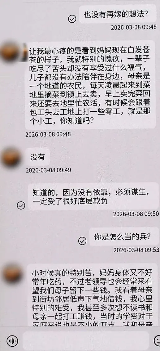 比如父亲离世多年,母亲一个人辛苦把他拉扯大,感觉很愧对母亲等等之类的,给人一个大孝子的形象。