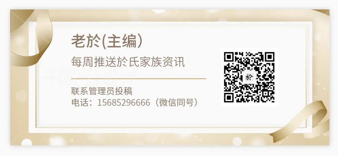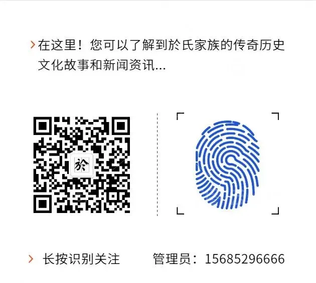 於氏家族文化研究为全国最大的於氏文化传播平台,无论您在哪里,只要您姓"於",请您先点击上面的蓝色字"於氏家族文化研究" 再点击"关注",即可加入於氏大家庭,和世界各地於氏宗亲交流。网聚天下於氏,传承於氏文化,传播於氏正能量。