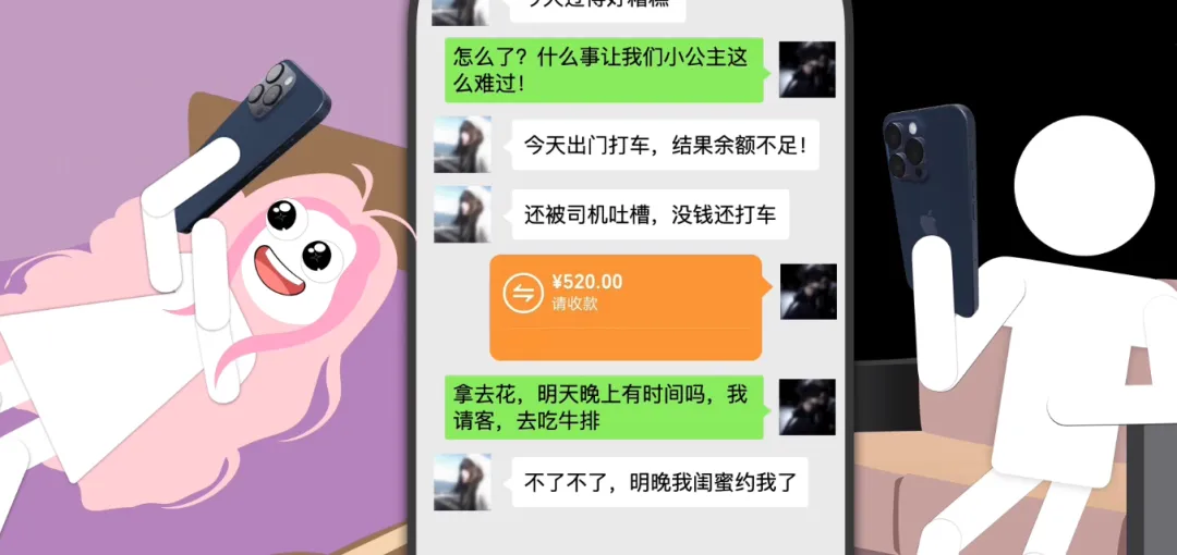 仗着性别优势各种撒娇占便宜,张口闭口要红包、要礼物,日常聊天除了要钱还是要钱,从不会心疼你的付出。你说手头紧,她要么装糊涂岔开话题,要么直接甩脸子,从来不会和你分担哪怕一杯奶茶的钱,在她眼里,你的所有付出都是理所当然。2. 不官宣、不拒绝其他男生示好