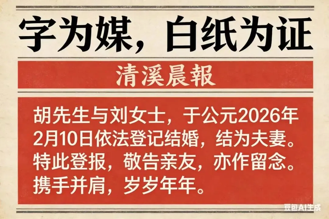 婚恋是中华文明的永恒命题,串联起个体情感与社会秩序。从清代“通书合婚”的灶前祈祥,以八字为凭维系家族契约;到民国“铅字登报”的郑重昭告,以报纸为证宣告婚姻自主;再到今日青岛“高空登记”的浪漫仪式,以云端为盟让婚姻回归爱与陪伴。中国婚恋文化历经千年,完成了从家族本位到个体自主、从礼制约束到精神共鸣的深刻蜕变,每一步变迁都是时代发展的生动注脚,承载着不变的情感内核与鲜活的时代精神。先秦时期的婚恋文化,远非后世“父母之命、媒妁之言”的刻板印象,而是保留着上古自由恋爱的鲜活底色。《诗经·国风》中收录了大量民间情歌,如《郑风·溱洧》记载了郑国上巳节时,青年男女在溱水、洧水河畔踏青相会、互赠芍药定情的场景,“维士与女,伊其相谑,赠之以勺药”,直白展现了先秦民间自由择偶的风俗。 据《周礼·地官·媒氏》记载,当时官方甚至规定“仲春之月,令会男女,奔者不禁”,即每年农历二月,官府会组织未婚男女相会,若双方情投意合,即便没有媒人、父母同意,也可自由结合,不受礼法约束。这种制度源于上古氏族社会的婚恋传统,是农耕文明早期,人口繁衍需求与民间情感自由的结合,也让先秦成为中国古代婚恋文化中最具浪漫与自由色彩的阶段。汉代儒家对婚姻有一套完整的礼法规范,其中最重要的原则是:婚姻不能由男女自己决定。据《白虎通义·嫁娶》记载:“男不自专娶,女不自专嫁,必由父母,须媒妁。”为什么?书中给出的理由是“远耻防淫佚也”。也就是说,男女自由恋爱被视为“淫”,必须通过父母之命、媒妁之言才能缔结婚姻。 此外,《白虎通义》还规定了成婚年龄:“男三十而娶,女二十而嫁。”并引用《诗经》为证:“娶妻如之何?必告父母。” 这套规范自汉代确立后,影响了中国两千多年的婚恋观念——婚姻不是两个人的事,而是两个家族的事。当代婚恋文化新图景当今时代婚恋文化正温柔而坚定地现代化转型。青岛369米高空婚姻登记点的走红,便是传统与现代双向奔赴的鲜活注脚。作为山东首个高空登记点,青岛云上海天将政务服务搬进地标,依托369米全景玻璃观景台,让新人在云端山海间完成登记,把程式化手续变成一项浪漫仪式。这不仅是场景创新,更是婚恋文化的破局:年轻人不再满足于千篇一律的流程,而是去追求专属仪式感;婚姻不再只是“搭伙过日子”,更成为自我表达与情感共鸣的载体。从极简婚礼到“无彩礼”共识,当代婚恋正在剥离物质枷锁,回归爱与陪伴的本质。婚恋不再是人生必答题,而是年轻人自主选择的幸福答卷。2026年2月10日,胡先生与刘女士登记结婚。他们不选朋友圈官宣,而选在《潇湘晨报》红色版面宣告婚讯。启事写道:“胡先生与刘女士,于公元2026年2月10日依法登记结婚,结为夫妻。特此登报,敬告亲友,亦作留念。愿执手偕行,岁岁年年。”没有冗长誓词,没有热闹配图,仅铅字为证,白纸黑字,郑重笃定。这对新人坦言:朋友圈喜讯稍纵即逝,而登报文字可被剪下珍藏,多年后依然清晰。这种民国流行的结婚登报,在数字时代重焕生机。不张扬却自有分量,不喧闹却足够永恒。一方小小版面,把爱情承诺刻进纸张纤维,让婚姻回归本真——不是表演,而是一份值得郑重记录、经得起时间翻阅的纸质契约。从先秦自由相会到当代云端告白先秦婚恋保留着自由底色,《诗经》记录男女踏青定情,《周礼》“奔者不禁”更以官方制度保障婚恋自主,充满浪漫气息。如今婚恋文化走向现代化,高空登记、极简婚礼等新形式兴起,年轻人追求仪式感与情感本真,婚姻从世俗约束变为自主选择的幸福表达。