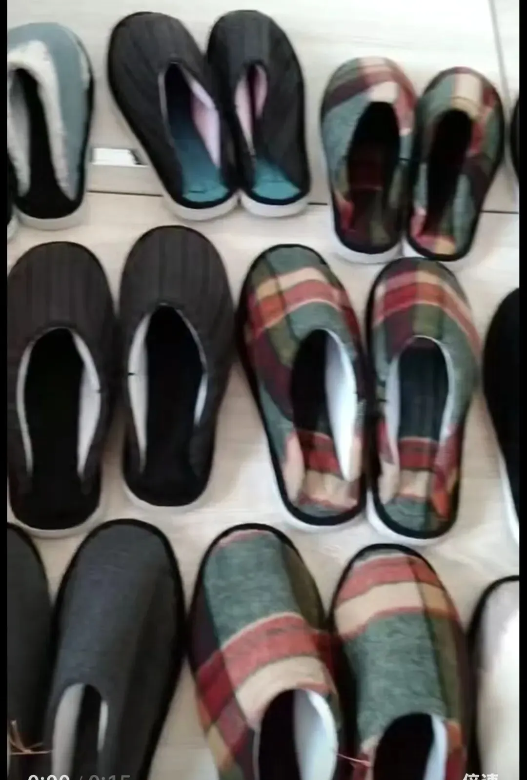 上周六和同学在大窝聚会时,遇到了田医生的表姐——玲玲姐,她是一位看起来很和善的大姐,年龄大概是六十岁的样子。那天她是专程给田医生送拖鞋来的,见我目不转睛的看着这些用不穿的呢子面料做的拖鞋,她笑着告诉我,自己在家闲着没事做,亲戚朋友给了不少旧衣服,于是她就在网上买了很多鞋底,用这些旧服装做了一些拖鞋。