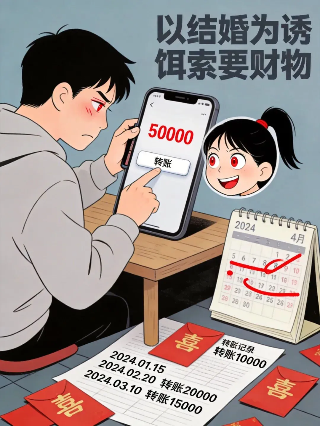 收集哪些证据:1.转账记录(银行流水、微信/支付宝截图)2.聊天记录(尤其是索要财物的对话)3.录音(对方承认要钱、承诺结婚等)4.证人证言(如有朋友在场)