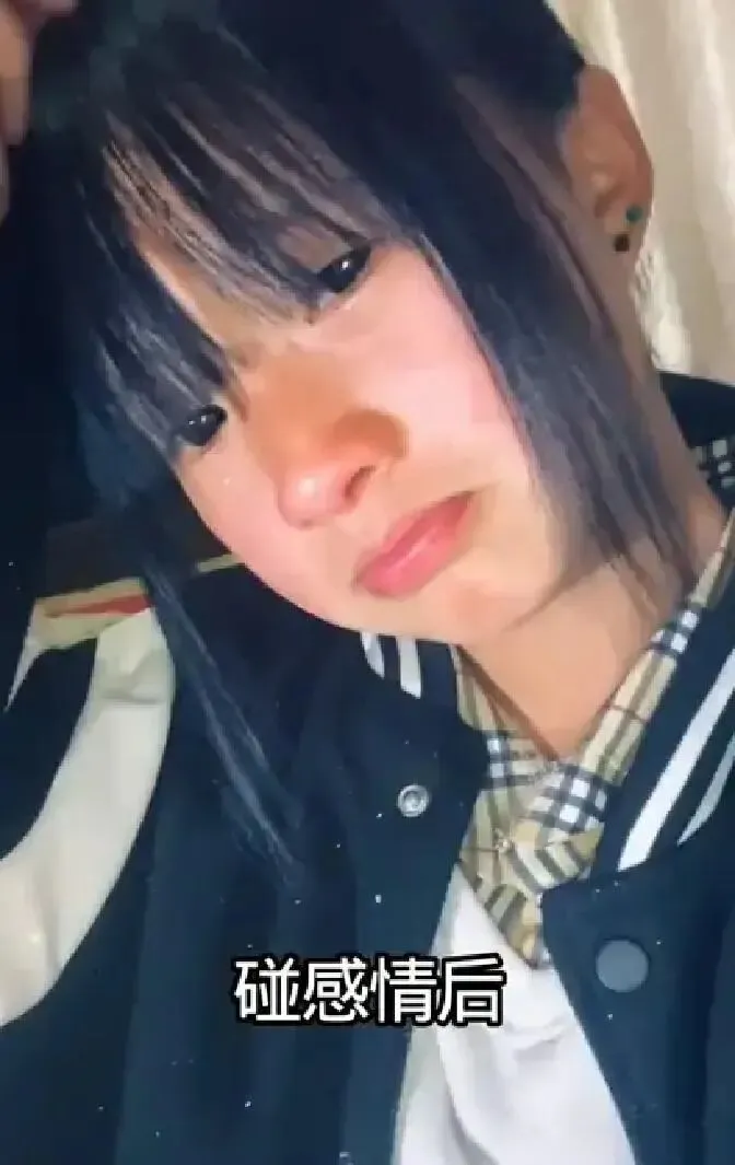 视频中这个云南的女孩晒出了自己谈恋爱之前后的样子,看上去才初中生的年纪,齐刘海、大眼睛,脸上却没有十五六岁该有的轻松。她把恋爱叫做“碰感情”,语气像是在学大人讲话,一碰就把自己碰到了眼泪里。