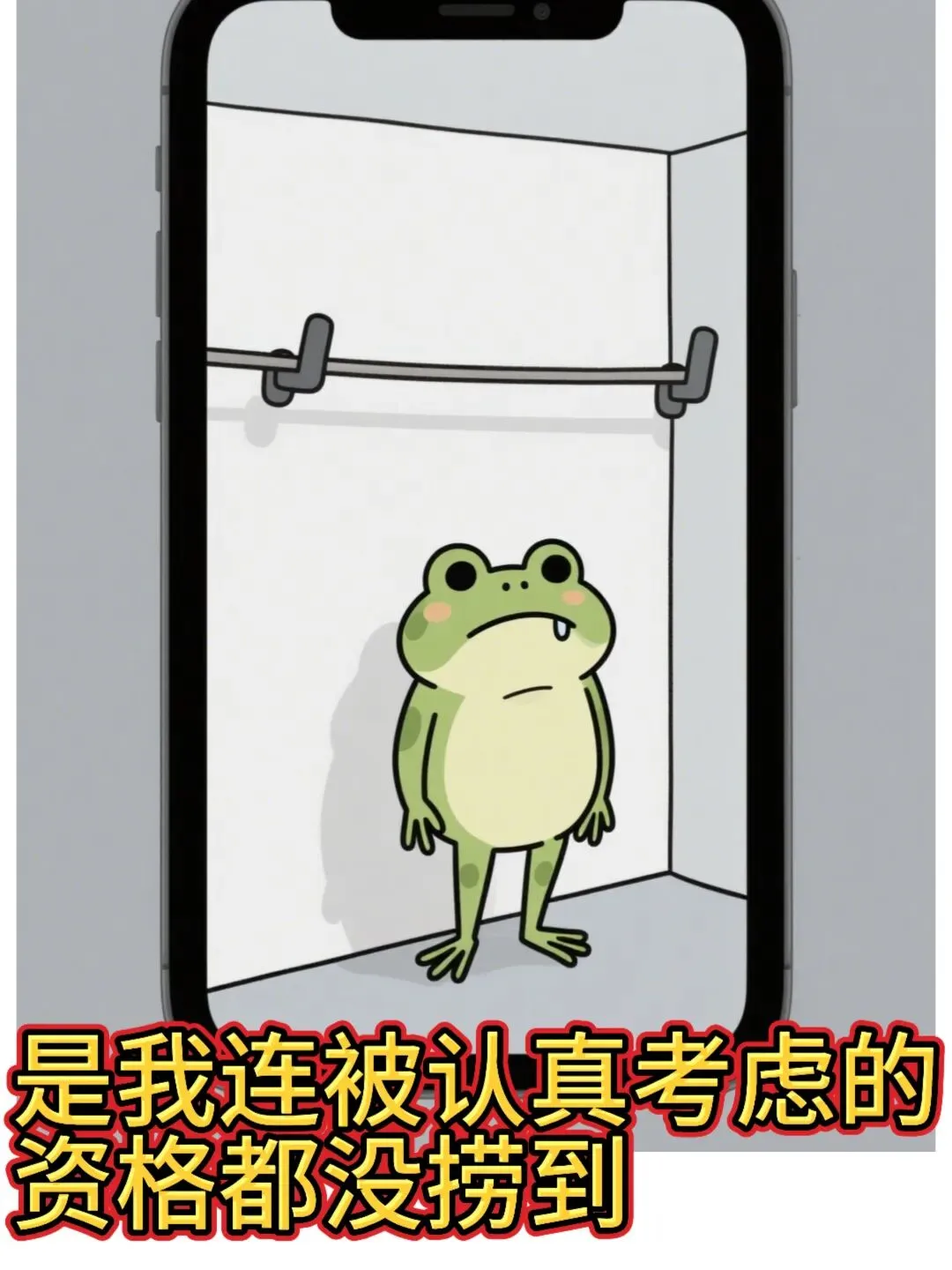 卡通职场青蛙被晾在一边,孤零零站着,周围空荡荡,眼神落寞卑微,搞笑心酸风,画面干净