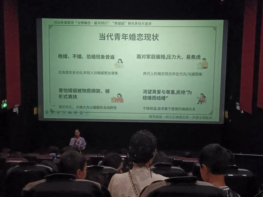 此次宣讲是来宾市持续推进婚育新风进万家、助力乡村振兴与精神文明建设的重要举措,为营造健康、理性、文明的婚恋氛围注入了温暖力量。
