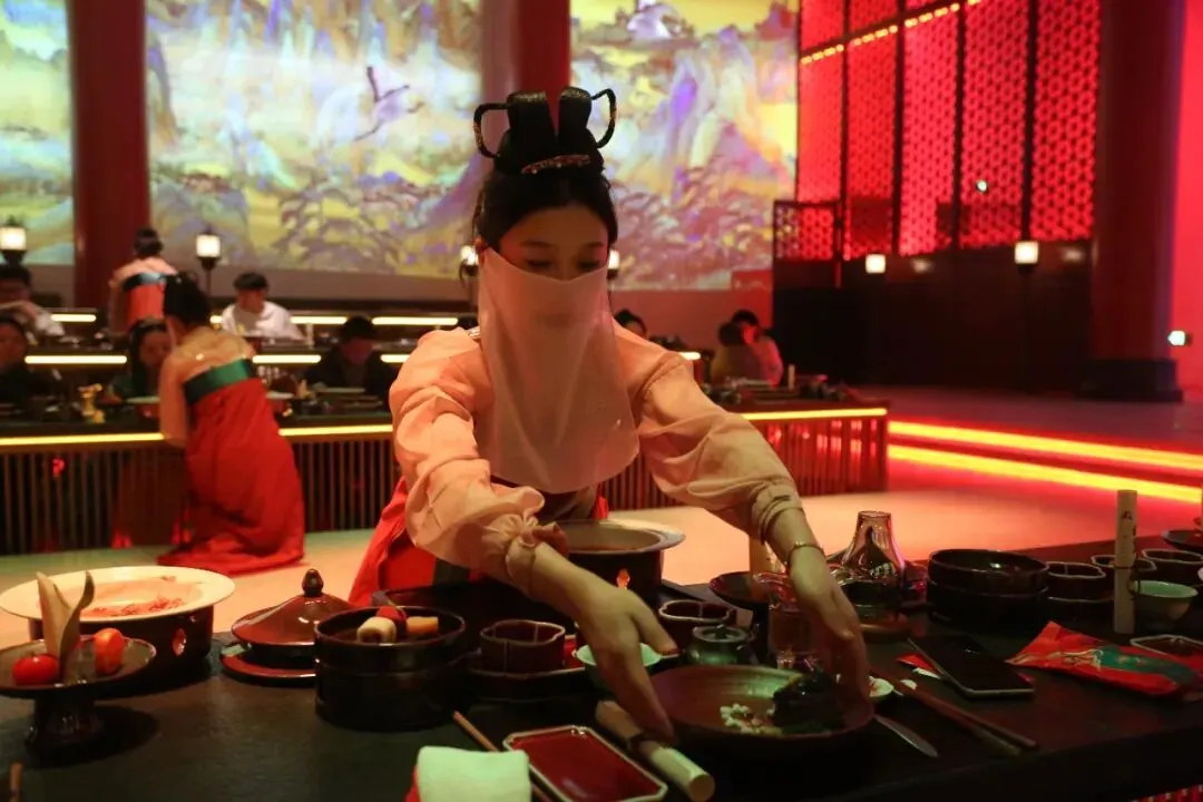 还能一起体验《武皇盛宴》,邂逅一场穿越盛唐的沉浸式宫廷剧,武皇款款走过,华服仕女奉茶,光影里,品御膳、赏乐舞,做一回神都贵客。