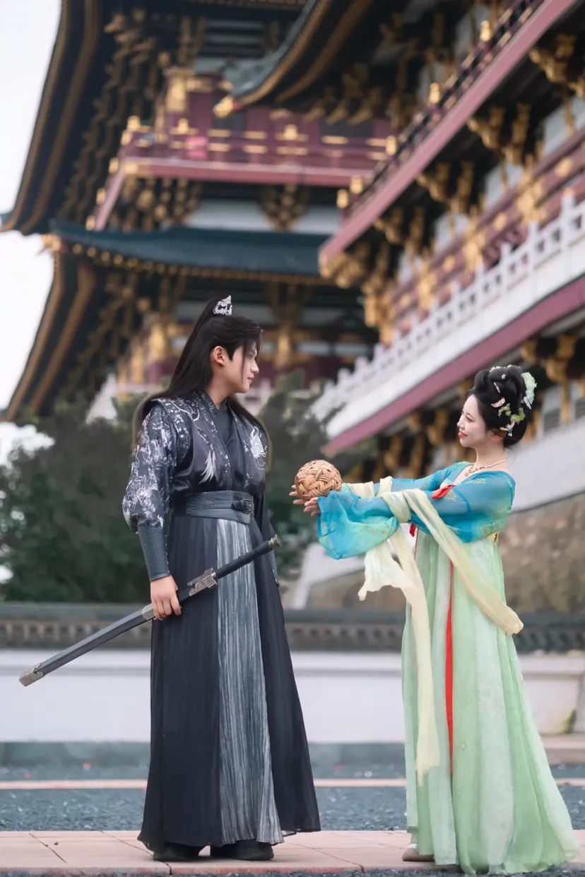这里是汉服打卡的绝佳地,飞檐翘角的唐风阁楼,朱红廊柱与青砖黛瓦相映,每一处都是天然取景框。