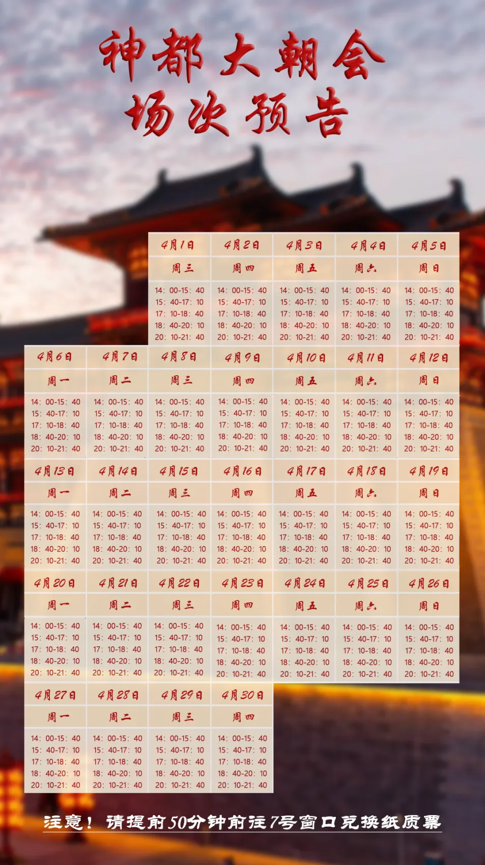时间:2026年4月4日至2026年4月30日
