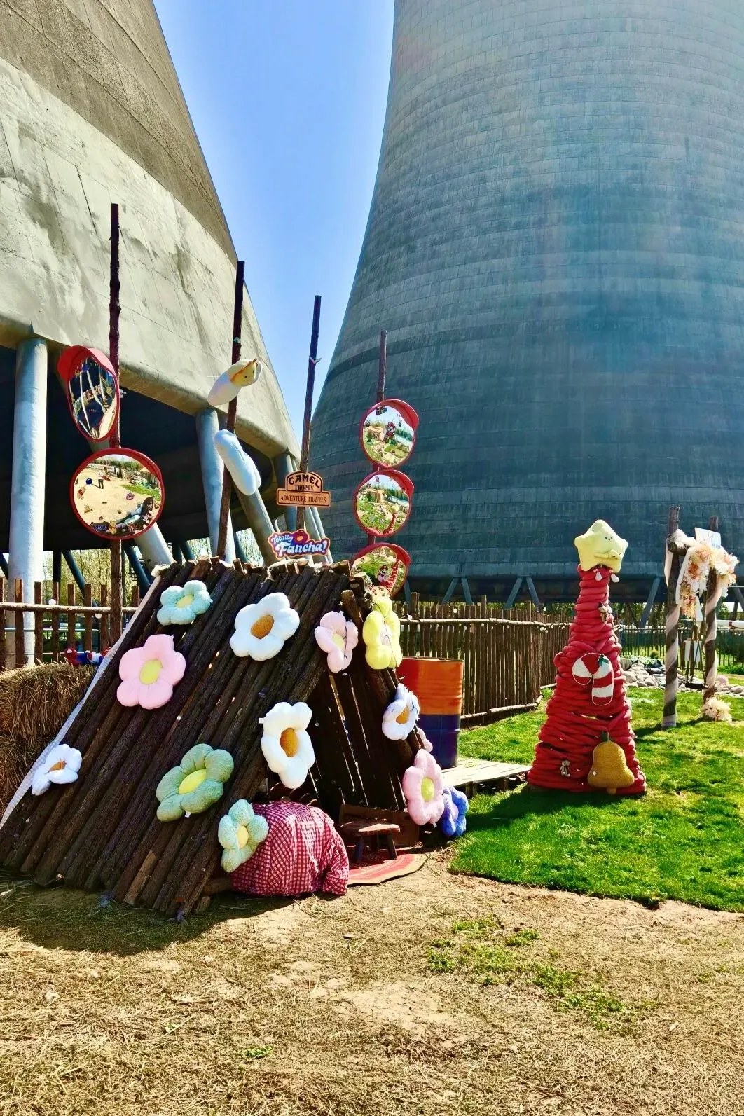 玩累了,就去冷却塔下的草坪露营。支一顶帐篷,看云卷云舒,听风吹过树叶的声音。