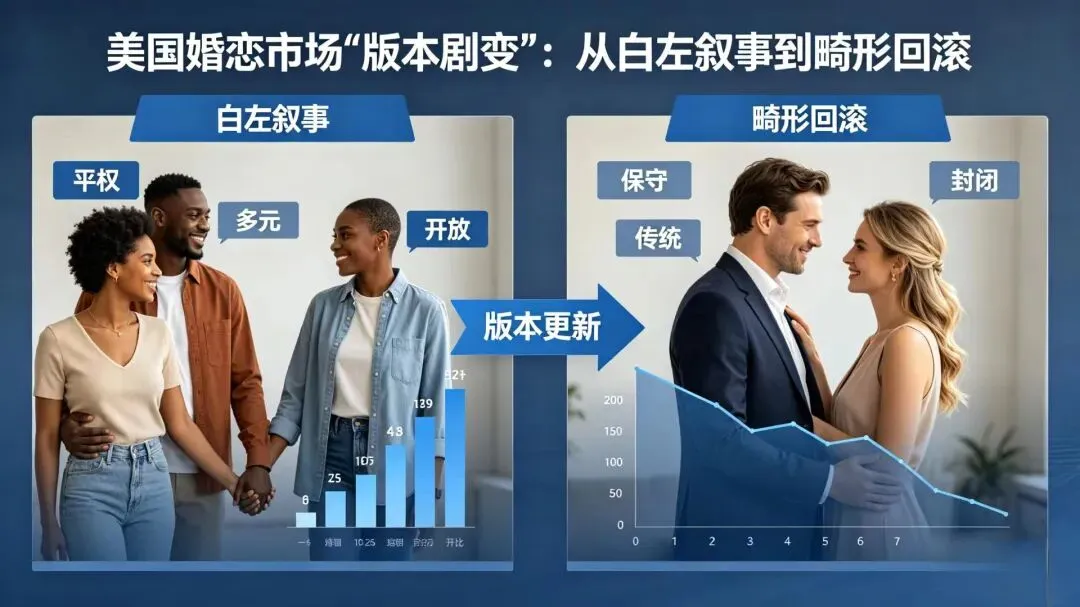 美国婚恋市场已经进入一个 “崩溃与回滚混合的畸形版本”: