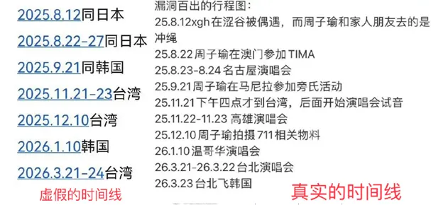 有网友试图整理所谓“证据”,声称许光汉与子瑜从2025年开始行程多次重叠,借此推测两人可能正在交往。