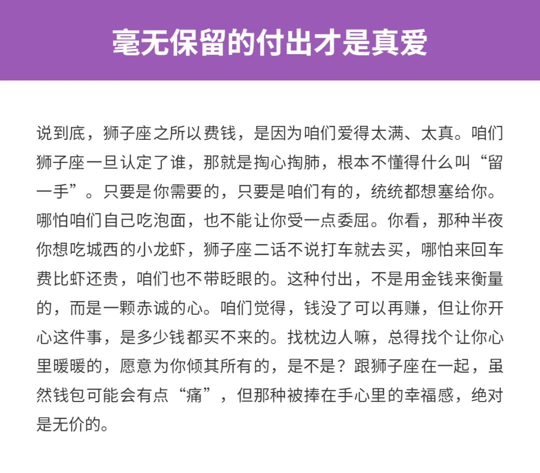 为什么说狮子座是恋爱最费钱的星座,