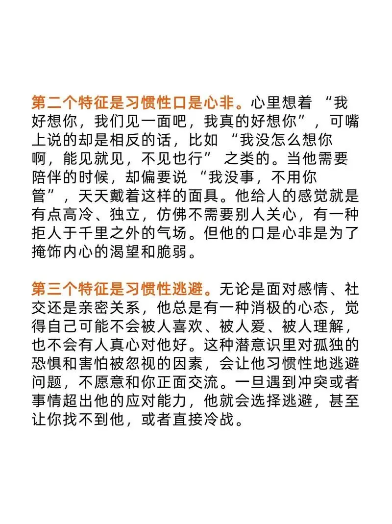 许多拥有房、车、稳定工作的优质男性同样长期单身,而许多经济条件一般的男性却能顺利组建家庭。这一悖论提示我们,经济条件只是婚恋市场的入门门槛,真正决定一个人能否建立和维持亲密关系的,是其性格特质与情感能力。将30岁以上、有婚恋意愿但长期未能建立稳定亲密关系的男性统称为"大龄剩男"。那些在亲密关系中会产生负面影响、阻碍个体建立和维持健康伴侣关系的不良性格特质、思维模式与行为习惯。社交能力缺失是大龄剩男最普遍、最基础的性格缺陷,也是导致他们无法接触到潜在伴侣的直接原因。不善言辞,习惯性"把天聊死",无法与异性进行流畅、有趣的对话。工作与生活两点一线,除了同事和老同学,几乎没有认识新异性的渠道。脸皮薄,自尊心强,害怕被拒绝,从不主动出击,一味等待"缘分"降临。我是985理工硕士,在国家电网工作,有车有房,但我就是不知道怎么跟女孩说话。每次相亲,都是对方找话题,我只会嗯啊哦,最后人家觉得跟我聊天太累,就不了了之了。认知偏差是指个体对自我、他人及亲密关系的错误认知,它会导致个体做出错误的判断与决策。主要包括:归因偏差:将自己单身的原因完全归咎于"穷"和"女人太物质",拒绝反思自身问题。完美主义:对伴侣有着不切实际的理想化标准,从年龄、外貌到学历、性格都有严格要求,稍有不符就一票否决。自我中心:大男子主义严重,凡事以自己为中心,不懂得尊重女性,不考虑对方的感受。悲观主义:天天哭穷抱怨,浑身充满负能量,对生活和未来缺乏信心,无法给女性提供安全感。情感回避,即心理学上所说的"回避型依恋",是优质大龄剩男最常见的心理问题,也是最难解决的问题。其核心特征是对亲密关系的恐惧与防御:恐惧亲密,当关系深入时会下意识地拉开距离;拒绝暴露脆弱,习惯将所有情绪藏在心里;害怕承诺与责任,对婚姻抱有过度的焦虑与恐惧;过度强调独立,将依赖视为软弱的表现。害怕承诺,不是不相信爱情,而是恐惧失去自己的空间。每次对方试图靠近,我的第一反应是逃避,仿佛被无形的手推回安全区。