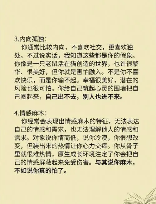 一些根深蒂固的人格特质,会严重影响个体在亲密关系中的表现,主要包括:偏执执拗:性格一根筋,不懂变通,听不进不同意见。吝啬小气:把钱看得过重,即使在恋爱中也过度计较得失,不愿为对方付出。脾气暴躁:情绪控制能力差,容易因为小事大发雷霆。自私自利:凡事只考虑自己的利益,缺乏同理心与奉献精神。一个人的生活状态,是其内在精神世界的外在体现。许多大龄剩男之所以缺乏吸引力,是因为他们的生活本身就一团糟:缺乏人生规划,得过且过,浑浑噩噩,没有上进心;生活习惯糟糕,不注意个人形象,邋里邋遢;沉迷于游戏、钓鱼等个人爱好,将所有时间精力都投入其中,完全没有留给恋爱和家庭的空间。大龄剩男的性格缺陷,并非天生如此,而是个体成长经历、社会文化环境与婚恋市场压力三重因素长期叠加的结果。原生家庭是性格形成的摇篮。许多问题性格都可以追溯到童年时期的成长经历:父母的情感忽视,导致孩子形成回避型依恋模式;父母过度节俭的生活方式,内化为孩子根深蒂固的消费观;严厉的家庭教育,导致孩子性格内向、自卑、不敢表达自己;不幸福的家庭关系,让孩子对婚姻产生恐惧与不信任。传统的性别文化对男性有着"坚强、独立、理性、成功"的刻板要求。"男儿有泪不轻弹"的观念,使得男性从小就被压抑了情感表达的能力,形成了"情感失语症"。性格缺陷与婚恋失败之间,存在着一种恶性循环。一个性格内向、不善社交的男性,在婚恋市场上屡屡受挫,这会进一步打击他的自信心,让他变得更加自卑、更加回避社交。而长期的单身生活,又会让他更加习惯独处,更加难以适应两个人的生活,最终陷入"越单身越不会谈恋爱,越不会谈恋爱越单身"的死循环。破解婚恋困境,不能寄希望于女性降低标准,也不能一味抱怨社会不公,唯一的出路是向内求,通过系统性的自我提升,从根本上改变自己。