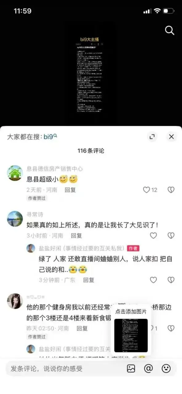 抖音女主播bi9瓜条事件,起因是她被河南息县的渣男许某哄骗,这许某在恋爱期间出轨bi9,一边维持正牌女友关系,一边跟bi9频繁约炮,各种酒店开房、深夜私会,玩得风生水起。渣男的女友发现后,不仅没有和渣男分手,甚至还在网上怼起了小三