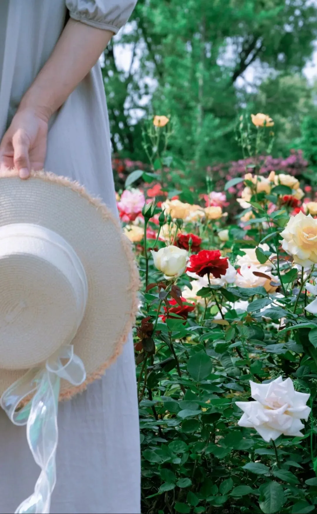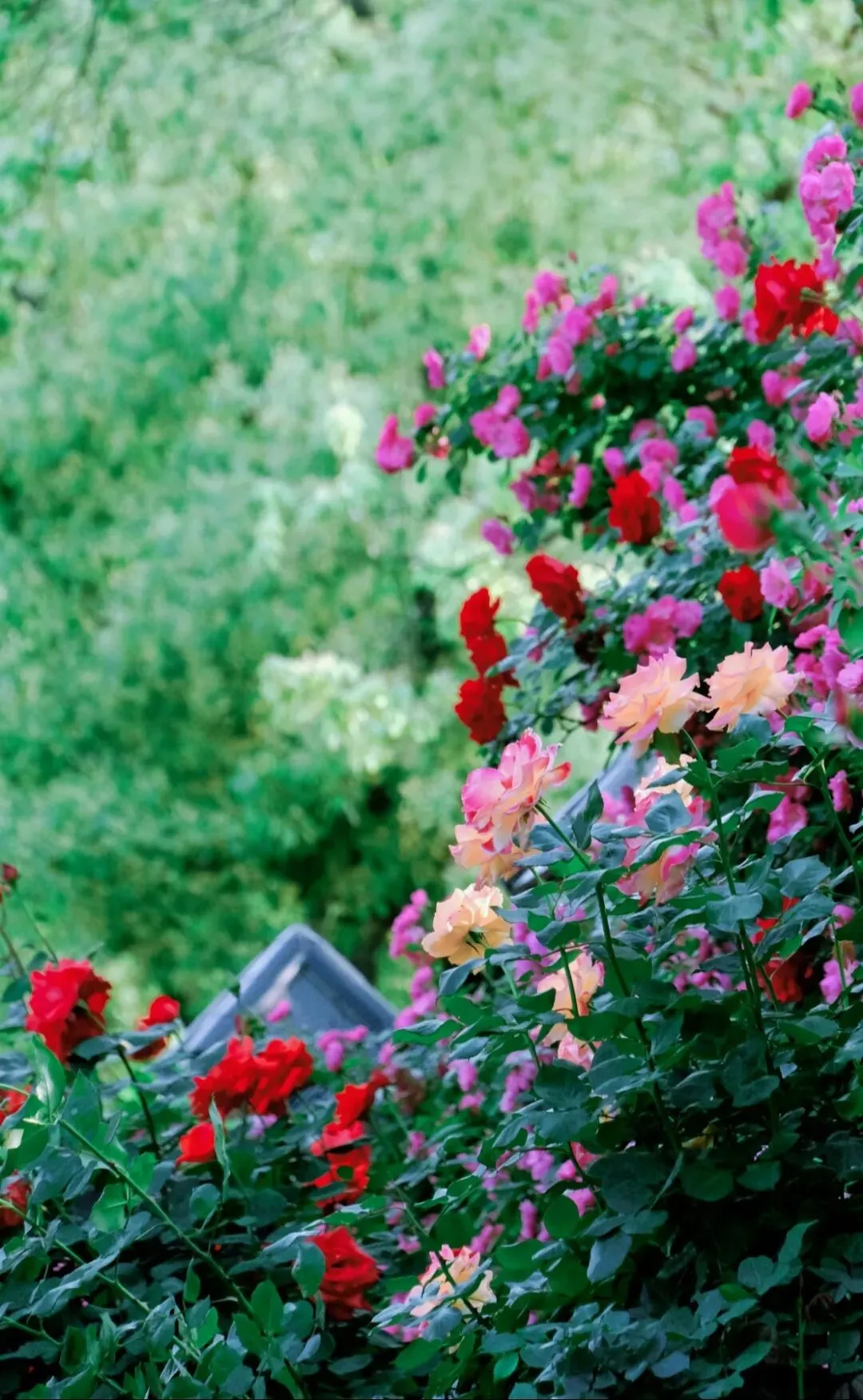 步入玫瑰园,玫瑰便一路相迎——红的、粉的、黄的、香槟色的、紫红的......一步一景,步步生香。