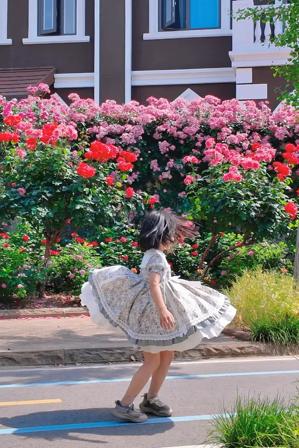 📷 站在藤本玫瑰墙下,裙摆被风轻轻吹起,可爱公主风瞬间拿捏。