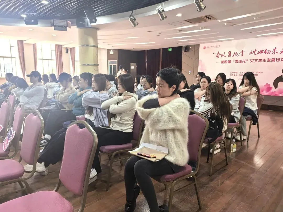 随后,上海睿家社工服务社婚姻家庭项目主管曹晓敏依托婚姻家庭辅导实务经验,以《爱的练习册——来自婚姻辅导室的真实故事》为核心载体,精选多起具有代表性的婚恋案例开展深度分享。案例涵盖情感沟通、边界建立、矛盾化解等多个方面,曹晓敏结合专业理论,深入浅出地为学生讲解情感管理技巧、高效沟通方法与亲密关系边界意识,引导学生正确看待情感中的得与失。同时,她还带领现场学生开展正念呼吸、情绪觉察等互动体验活动,让学生在沉浸式体验中学会感知自身情绪、理解他人感受,将专业的婚恋辅导知识转化为可感知、可运用的生活能力。
