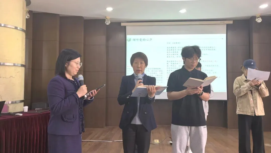 诗歌共读环节将活动氛围推向高潮。卫志红书记、曹晓敏老师与五位学生代表共同诵读经典篇目《致橡树》,铿锵有力、饱含深情的诵读,不仅展现了文学作品的魅力,更让在场学生在诗意熏陶中,深刻感悟平等、独立、尊重、珍惜与责任的现代婚恋内核,进一步深化了对健康婚恋观的理解与认同。