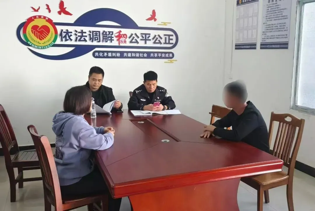 面对牵扯多方、情感与利益交织的复杂矛盾,调解工作组摒弃“等案上门”的被动思维,主动靠前履职。乡综治办与派出所民警迅速行动,坚持“预防为主、调解优先”原则,在初步掌握情况后,立即启动多元化解机制,整合基层治理力量,形成工作合力。